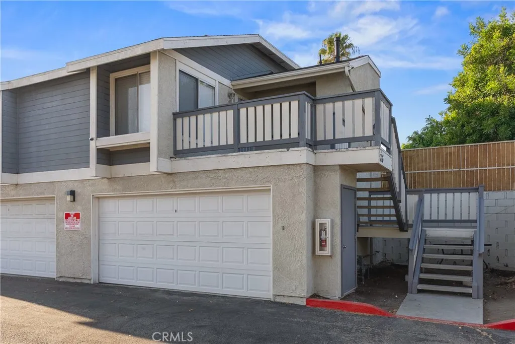 Detached carriage-style condominium with no shared walls, featuring the privacy of a single-family residence. This home features an attached two-car garage directly below the unit. The interior includes an open living and dining area with updated vinyl plank, laminate and tile flooring, a remodeled kitchen with quartz counters and stainless steel appliances, and spacious bedrooms. Additional highlights include a private balcony, updated bathrooms, and in-unit laundry. Located in a small community with easy access to freeways, shopping, and schools. Near Knott's Berry Farm and amusement parks.