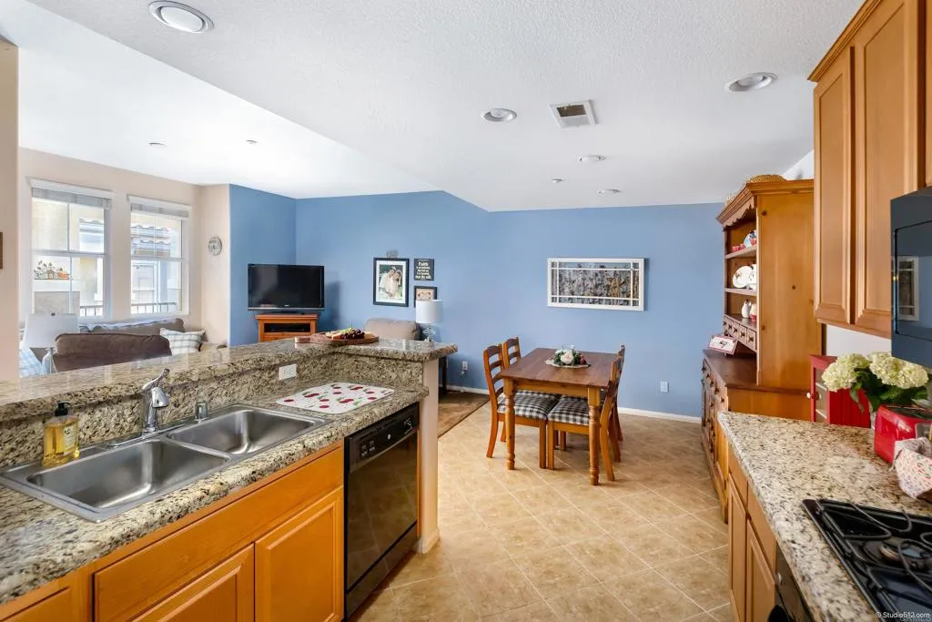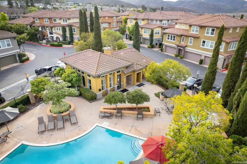 **PRICE IMPROVEMENT**Welcome to this modern, upstairs end unit in the upscale community of Treviso. This beautifully maintained home offers 2 generous sized bedrooms and 2 bathrooms. Vaulted ceilings, an open floor plan and a laundry room that fits a full size washer and dryer which convey. The Master bedroom has beautiful views and an oversized walk-in closet. Single car garage with storage and an extra parking space (#201), shady and close to the unit. There is plenty of guest parking, a sparkling heated pool and spa, clubhouse, and a barbecue area to entertain friends and family. Treviso is a safe and quiet community located minutes from Santee Lakes, Mission Trails, easy freeway access, shopping and restaurants.