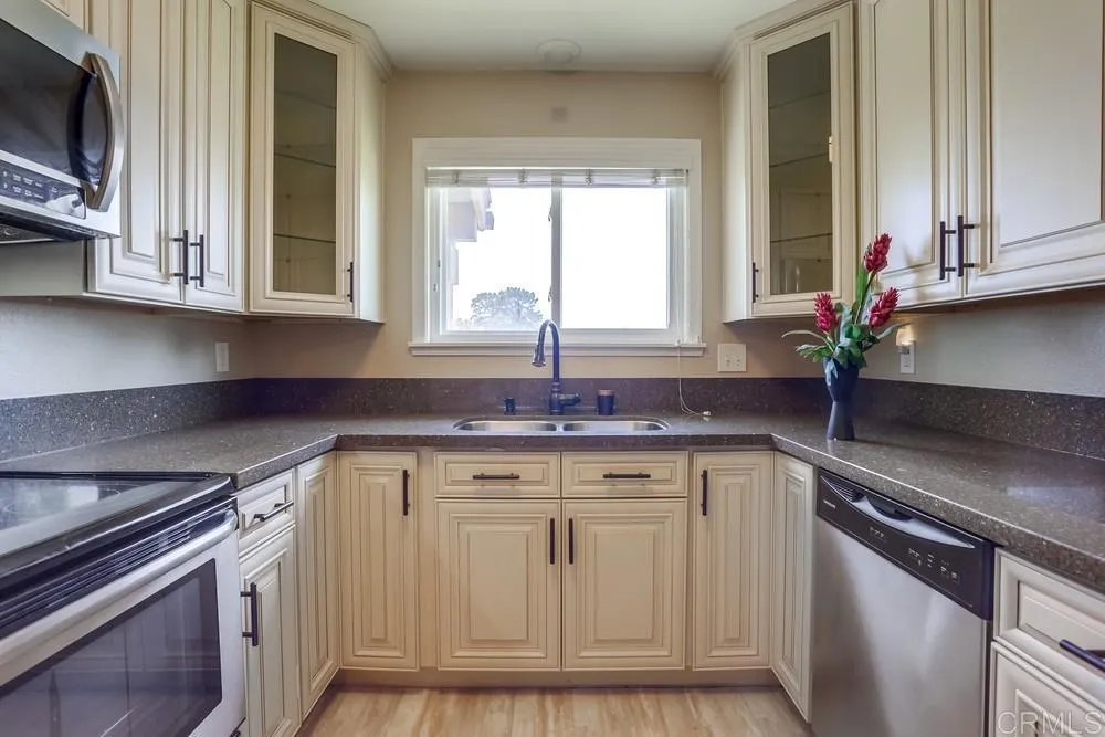 Welcome to your own slice of coastal paradise in one of Oceansides most sought-after 55+ communitiesOceana III. This spacious charming, single-level home offers breathtaking southwesterly viewsincluding a rare horizon ocean viewvisible from the living room, kitchen, and front patio. Thoughtfully designed with 2 bedrooms, 2 bathrooms, and 1,050 square feet of comfortable living space. The home features neutral flooring throughout, dual-pane windows, and abundant natural light. The upgraded kitchen boasts designer cabinets, stainless steel appliances, and ample storageperfect for everyday living and entertaining. Additional highlights include a privacy screen door, forced-air gas heating and central A/C, washer/dryer hookups, and more. The attached one-car garage is complemented by a fully gated and versatile carport, which can easily be transformed into a private outdoor living areaideal for enjoying the mild coastal climate year-round. The monthly HOA fee covers basic cable, water, sewer, and trash, offering exceptional value and peace of mind in a well-maintained community. Beyond the home itself, the Oceana III community offers a truly distinctive lifestyle that combines serene, peaceful surroundings with ample opportunities for social connection and active living. Residents have access to a generously sized pool, a relaxing spa, and a spacious clubhouse equipped with a full kitchen and fitness center. Scenic walking paths and numerous greenbelt areas throughout the community provide tranquil settings for daily strolls or casual gatherings with neighbors. Conveniently loc