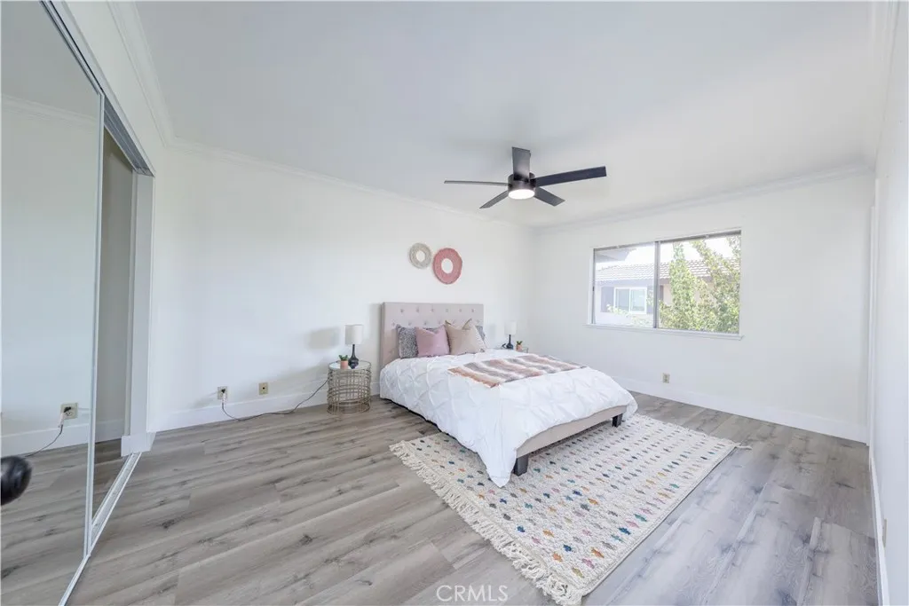 Experience modern living in this beautiful two-story townhome in the vibrant Bishop Place Townhome community, located in the heart of Little Saigon. The fully renovated interior in 2024 was designed for comfort and style. This home features three spacious bedrooms and two and a half beautifully appointed bathrooms. Step inside to discover an inviting atmosphere enhanced by rich wood laminate flooring that flows seamlessly throughout the space. Elegant crown molding and baseboards add a touch of sophistication, while recessed lighting creates a bright and airy ambiance. The modern kitchen and bathrooms showcase luxurious quartz countertops, making them not only functional but visually striking. The primary suite is a true retreat, featuring generous space and an en suite bathroom that boasts a large walk-in shower, perfect for relaxation. The two additional bedrooms offer versatility for guests, family, or a home office. Storage is never an issue with ample space available under the stairs, allowing you to keep your living areas clutter-free. An enclosed private patio is the perfect spot to sip your morning coffee, unwind after a long day or enjoy Al Fresco dining with guests. The community amenities are a highlight, featuring a refreshing pool, soothing spa, lush green belts, tennis courts, and a welcoming clubhouse. Plus, sewer and trash services are included in the HOA fees. Nestled near excellent schools, diverse shops, and efficient public transportation options, this home delivers both accessibility and lifestyle and is not just a place to liveits a place to thrive!