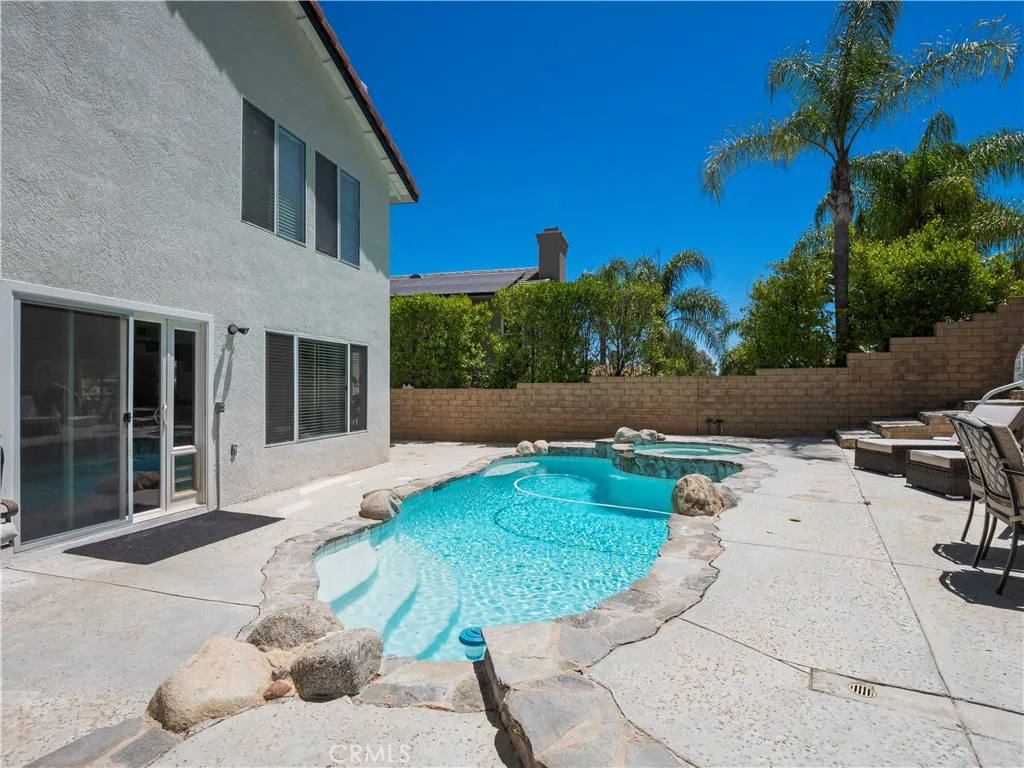 Exquisite 4-bedroom Pool Home in Castaic, situated on a nearly 10,000 sq ft lot with NO HOA fees. Nestled in a charming neighborhood, this residence greets you with a welcoming front porch and a bright, open floor plan featuring soaring ceilings and abundant natural light. The formal living and dining areas flow seamlessly into the kitchen and family room, where a cozy fireplace and views of the lush backyard create the perfect setting for gatherings. A convenient laundry area and guest powder room complete the main level. Upstairs, the spacious primary suite offers high ceilings, a large walk-in closet, and an en-suite bath with dual sinks and vanity area. Three additional bedrooms and a full bath provide plenty of room for family or guests. The private backyard is designed for relaxation and entertainment, highlighted by a sparkling pool and spa. Enjoy the proximity to Castaic Lake and Recreation Area, scenic hiking and biking trails, shopping, dining, and quick freeway accessideal for commuters. Dont miss the opportunity to make this beautiful home yours!