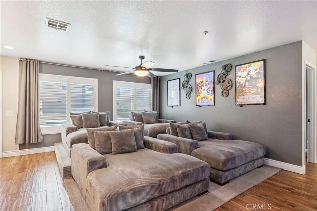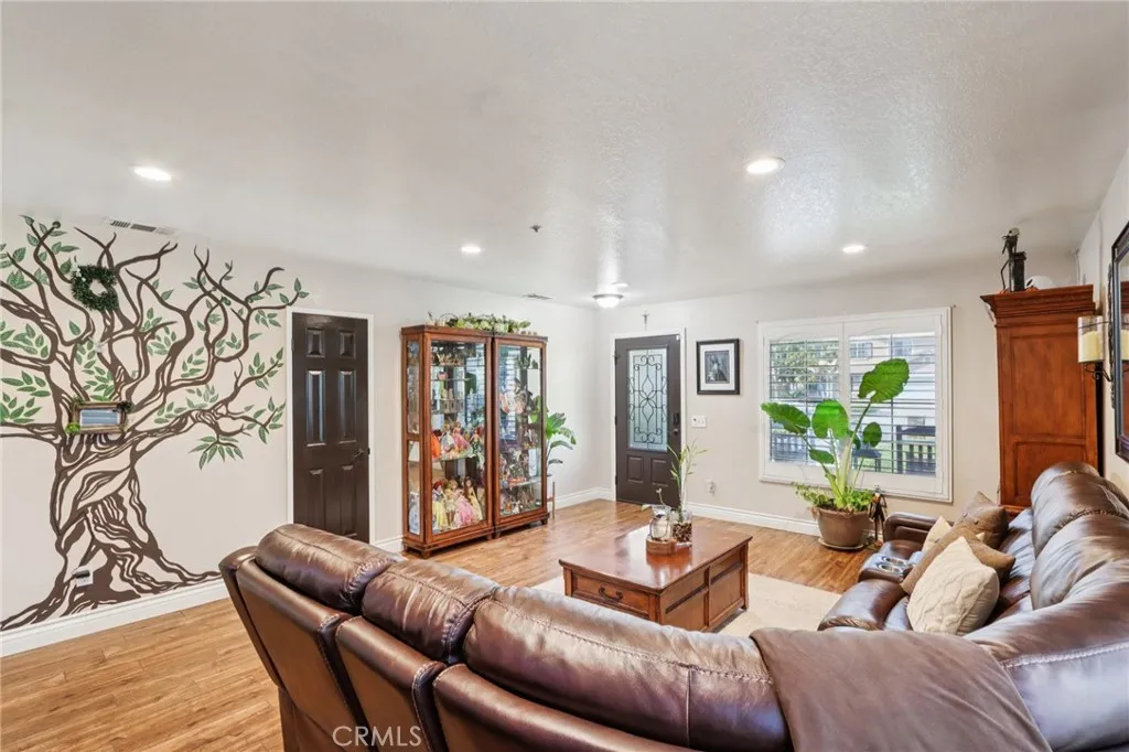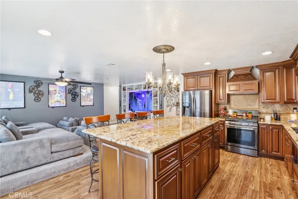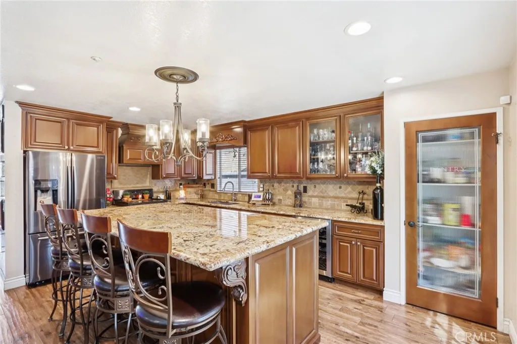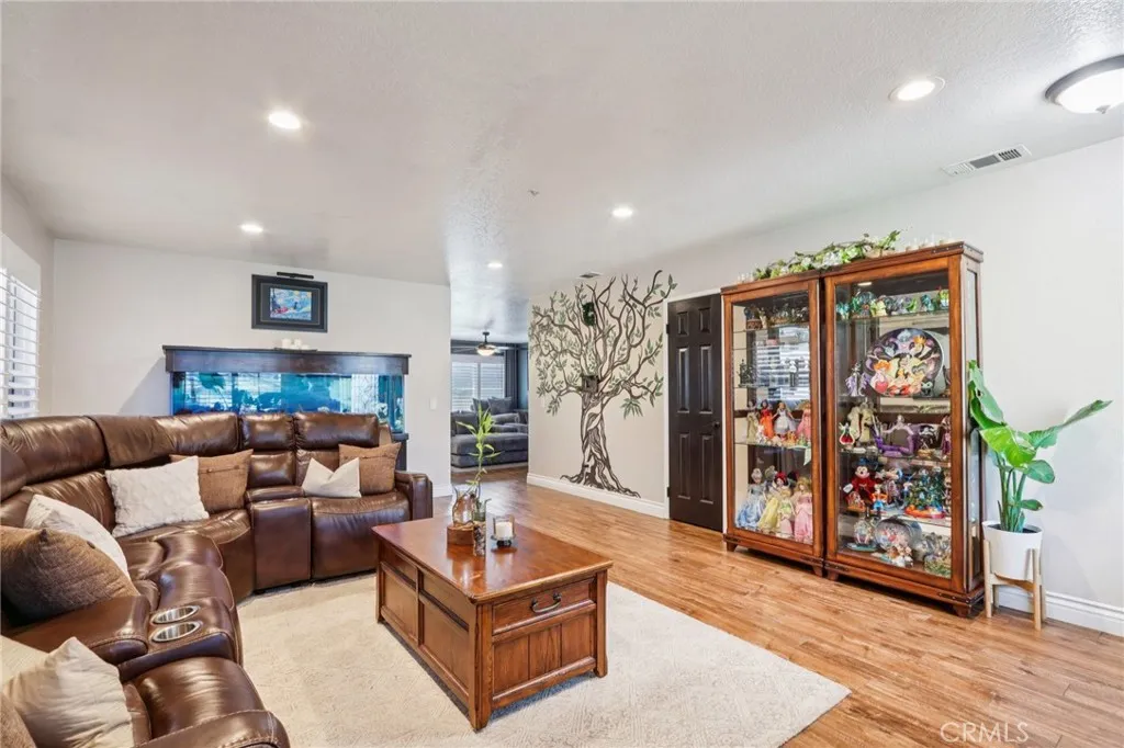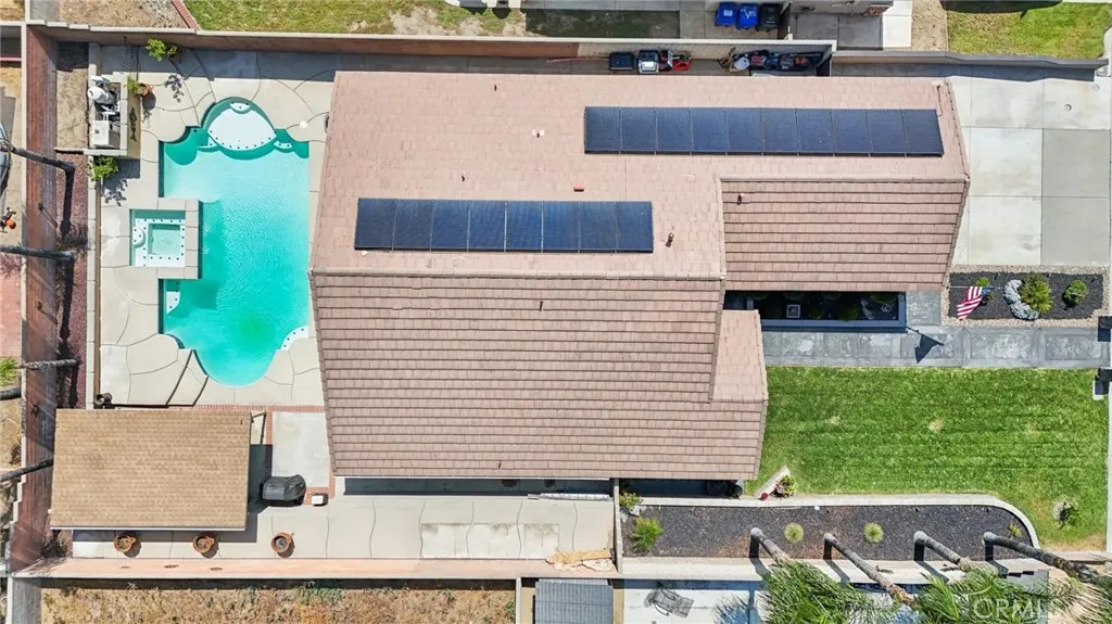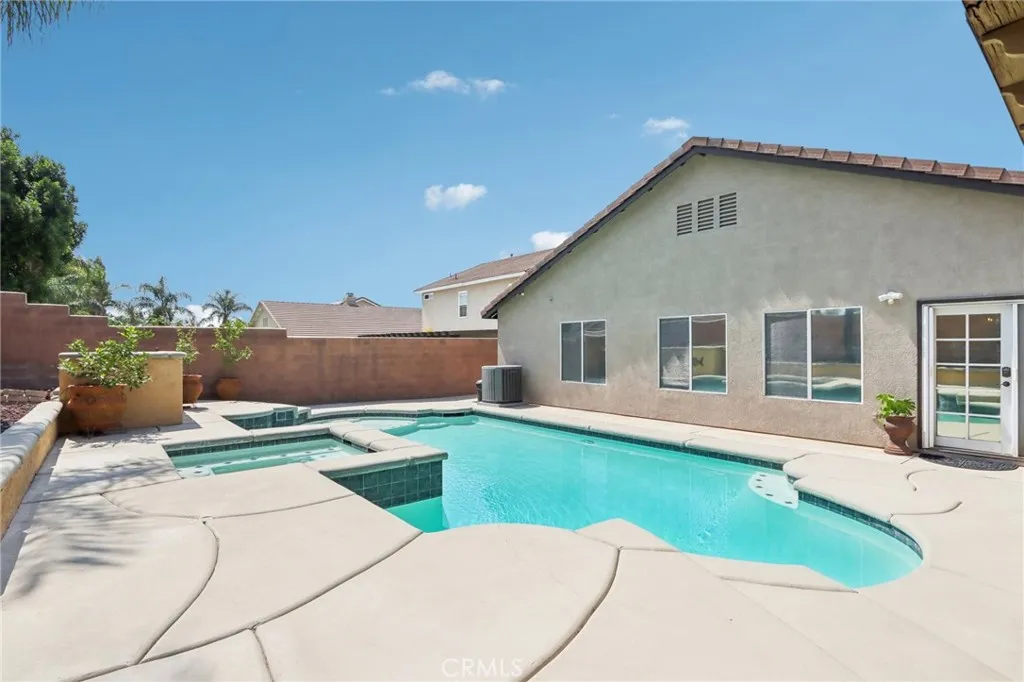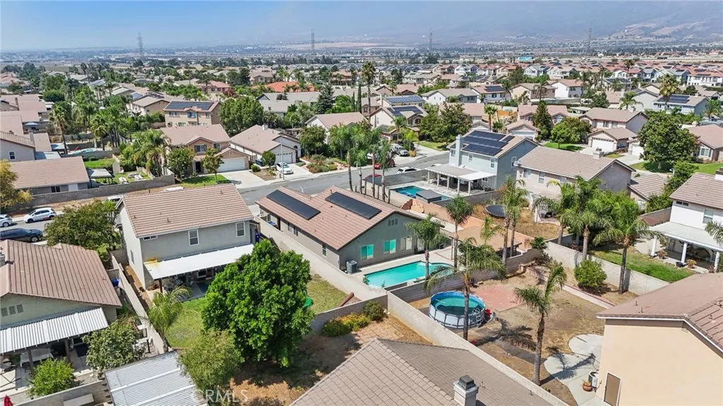Welcome to 6691 Lindbergh Avenue, where exceptional curb appeal greets you at this stunning single-story home. Featuring four bedrooms and two bathrooms, this residence offers a spacious living room that seamlessly connects to the kitchen and family room. The gourmet kitchen is appointed with granite countertops, rich cabinetry, a large island, a custom decorative glass pantry door, stainless steel appliances, and a wine refrigerator. The adjacent family room is perfect for movie nights, showcasing a custom-built entertainment center and a cozy electric fireplace. The master suite includes a newly upgraded walk-in closet with crisp white crown molding, drawers, and shelves. The master bathroom boasts beautiful earth-tone granite countertops and a tiled stone walk-in shower. Three additional spacious bedrooms provide comfort, while the fourth bedroom has been transformed into a luxurious dressing room with exquisite cabinetry, crown molding, and decorative lightinga true dream closet. The garage features epoxy flooring, overhead storage, modern cabinets, frosted glass panels on the garage door for enhanced natural light, and recessed lighting. Step outside to the expansive backyard, where you'll find mature palm trees, fire-pit, saltwater pool and spa with a relaxing sun shelf and waterfalls. Additional highlights include newer energy-efficient solar panels and roof, a Nest thermostat, plantation shutters, ceiling fans, luxury tile flooring, a smart Ring doorbell, and more. With NO HOA and LOW TAXES, and located in the top-rated Chaffey Unified School District, this home is