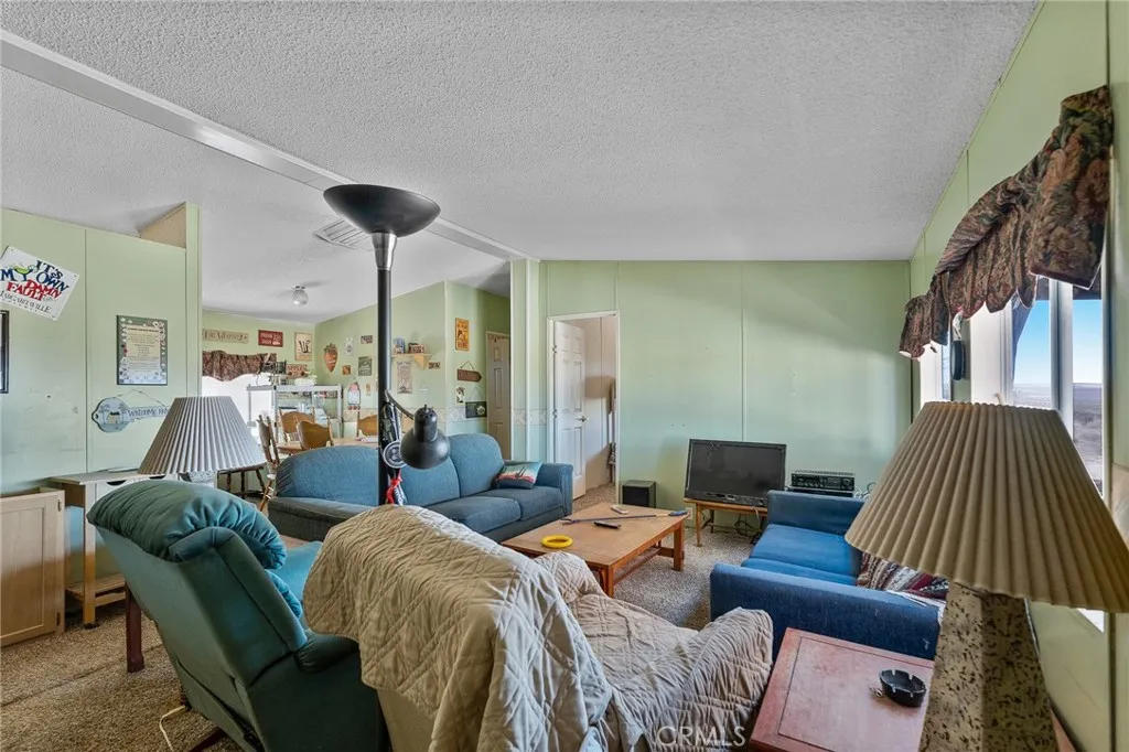 Discover wide-open desert living in this 3-bedroom, 2-bath manufactured home on 5 sprawling acres in Johnson Valley. Just a couple of lots from BLM land and the Big Horn Mountain Wilderness Area, this property offers direct access to endless trails, off-roading, and the natural beauty that makes the High Desert so unique. From the home, take in sweeping views of the vast desert landscape, surrounding mountains, and even up toward Big Bear. Inside, vaulted ceilings and abundant natural light create an open and inviting feel. The living room is carpeted and flows into the dining area, which sits just off the galley-style kitchen. The kitchen features a gas stove and a window over the sink that frames the desert scenery. A laundry area with washer/dryer hookups provides convenient access to the back patio. The primary suite is tucked away on one side of the home for privacy, with a bright carpeted bedroom and a private full bath that includes a single-sink vanity and shower/tub combo. Two additional bedrooms are located on the opposite side, also carpeted with good natural light, and share a full guest bathroom with a tub/shower combo. Comfort features include an evaporative cooler, central heating, propane, and hauled water service. Located in a sought-after area for off-roaders and outdoor enthusiasts, Johnson Valley is home to the famous King of the Hammers event. Youre also within a reasonable drive to Joshua Tree National Park for world-class hiking and climbing, or head up to Big Bear for a change of scenery in the mountains. This is a great opportunity to own a desert r