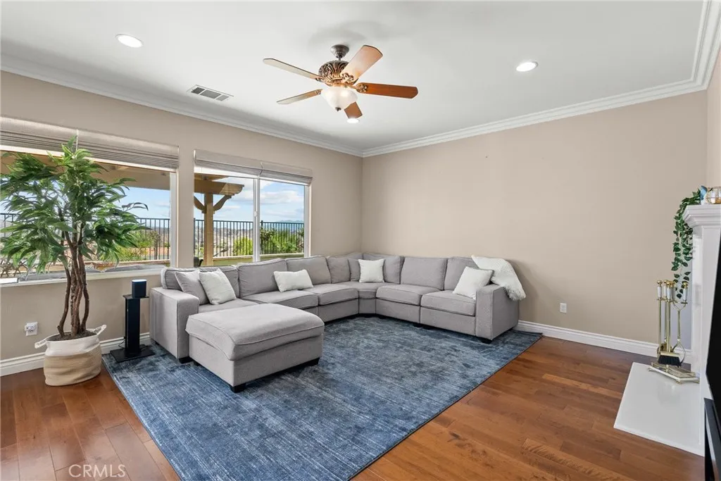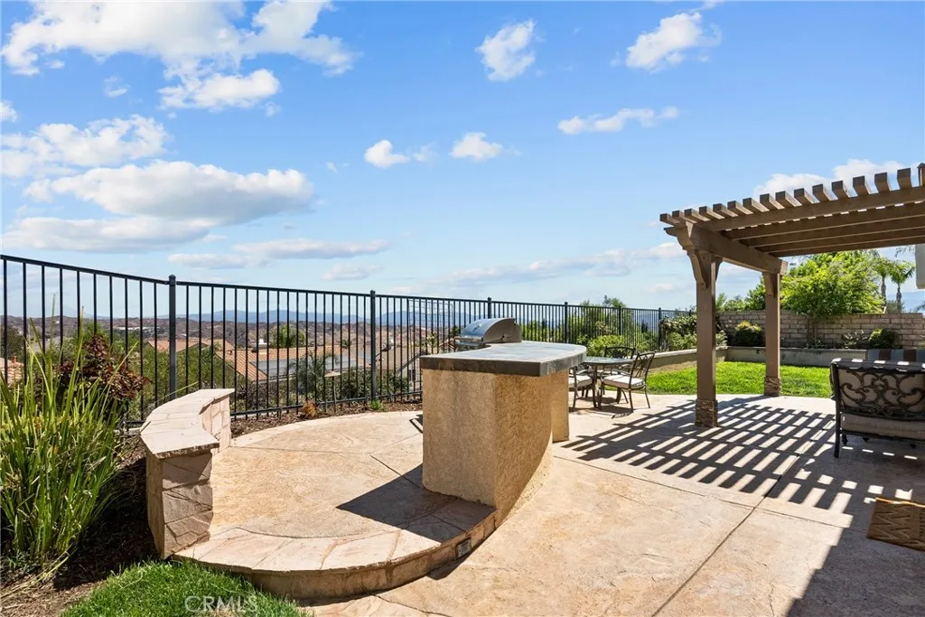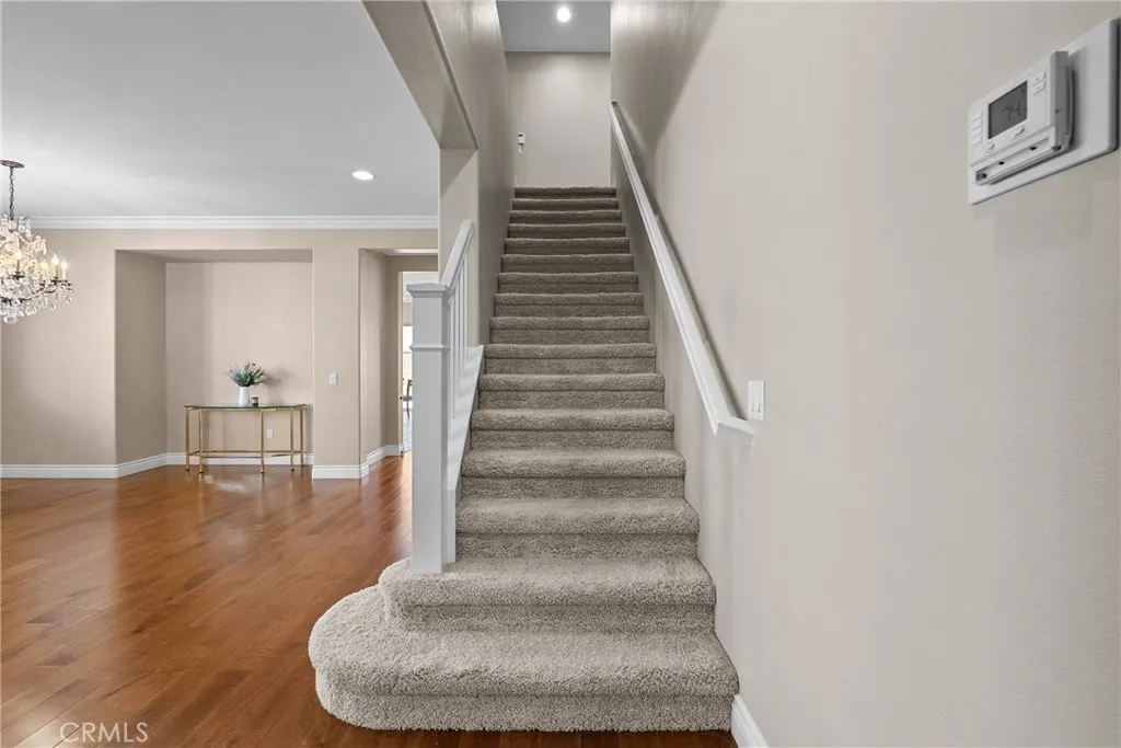 Tucked away on a quiet cul-de-sac, this stunning home combines comfort, functionality, and breathtaking views. Step inside to find a bright and spacious layout featuring wood floors, crown molding, recessed lighting, and elegant finishes throughout. The formal living and dining areas set the tone for entertaining, while the open-concept kitchen boasts granite countertops, a center island, and abundant cabinet space. It flows seamlessly into the family room, complete with a cozy fireplace and large windows framing sweeping mountain views. On the main level you'll find a luxurious primary suite with wood flooring, a walk in closet, and a spa-like bathroom featuring dual vanities, soaking tub, and a walk-in shower. Upstairs, youll find two spacious bedrooms, In addition, on the first floor the home offers a versatile den that can easily be used as a 4th bedroom, office, or playroom. The backyard is perfect for entertaining or unwinding, with a covered patio, built-in BBQ, and expansive views of the valley below. Additional highlights include a convenient upstairs laundry room, ample storage, and a two-car garage. Ideally located near schools, parks, shopping, and freeway access, this Castaic gem offers both tranquility and convenience.