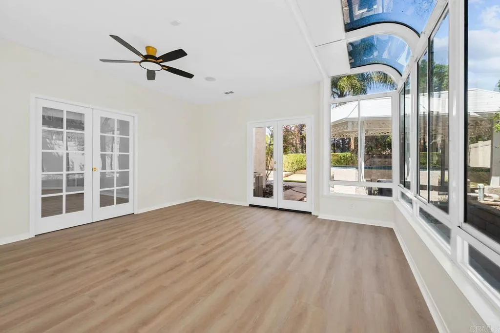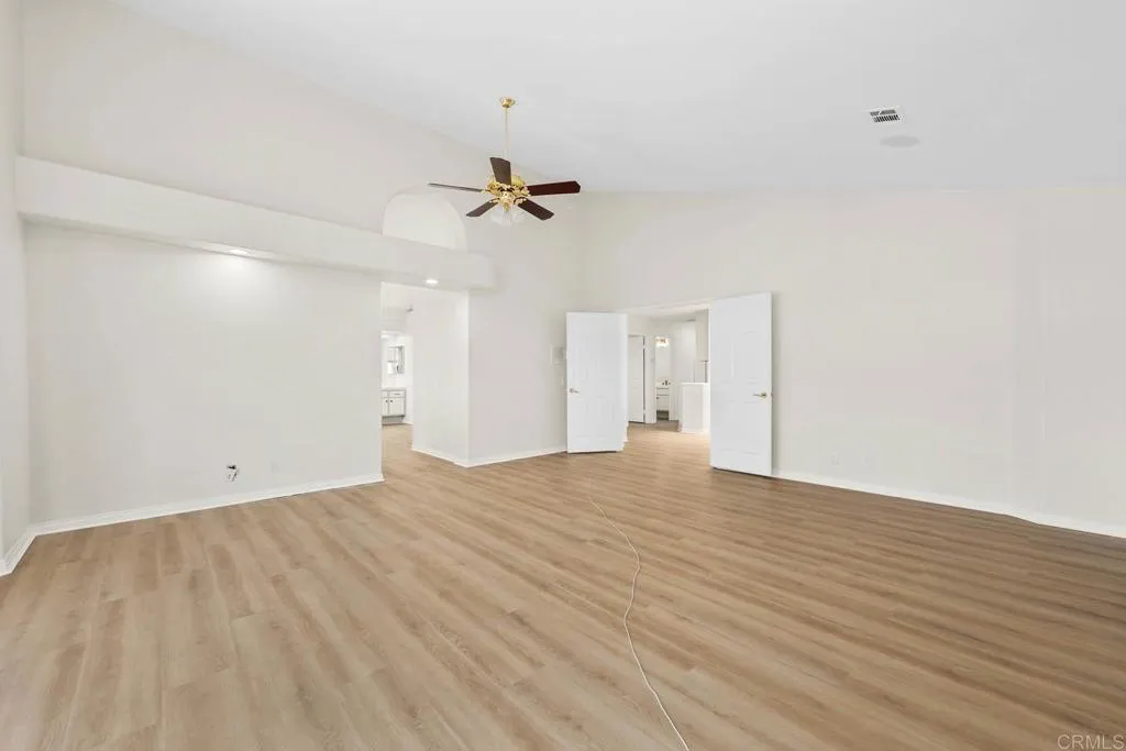 Welcome to this stunning 4,200 sq ft residence in the prestigious community. Perfectly set at the end of a private cul-de-sac with no homes behind, this property offers unmatched privacy, a long driveway, and a spacious 3-car garage. As you enter, youre greeted by soaring ceilings in the formal living room and elegant vinyl flooring throughout. To the left, discover a versatile piano/library room with fireplace that can serve as an optional 5th bedroom, private office, or study. The double-sided fireplace connects this space with the living room, creating both warmth and architectural charm. The heart of the home is the chefs kitchen, featuring quartz countertops, stainless steel cooktop, walk-in pantry, and a rare dual-island designone in the center for prep and one flowing into the family room, perfect for entertaining. This home offers 4 bedrooms plus the optional 5th, including two master suites. The upstairs primary retreat showcases a high ceiling, spa-like bath with dual vanities, and his-and-hers walk-in closets. On the main floor, the junior master includes a private sunroom additionideal as an office, rec space, or guest quarters. Step outside to your private resort featuring a sparkling pool and spa, expansive paver patio, and a fully built outdoor entertainment area with grill, power, and space to host unforgettable gatherings. Residents enjoy clubhouse, pool, spa, trails, and top-rated Murrieta schools. Fully renovated and move-in ready, this home combines privacy, functionality, and resort-style living. A rare opportunity with chefs kitchen, dual master suites