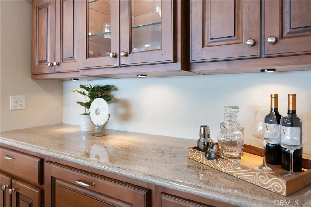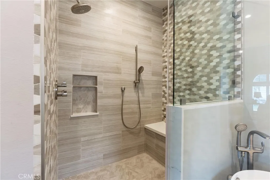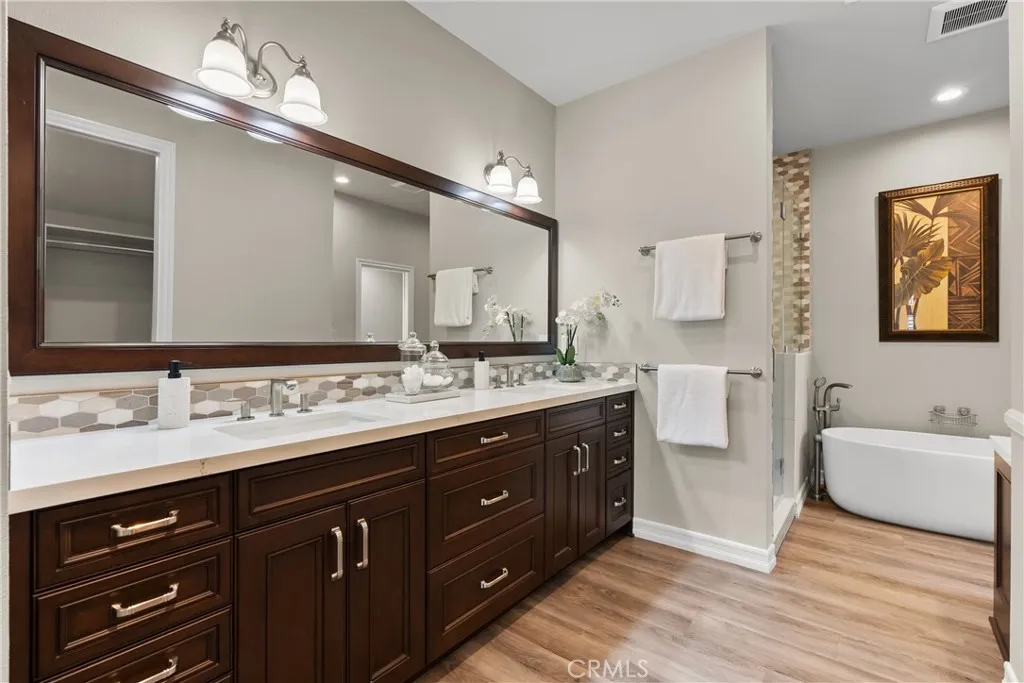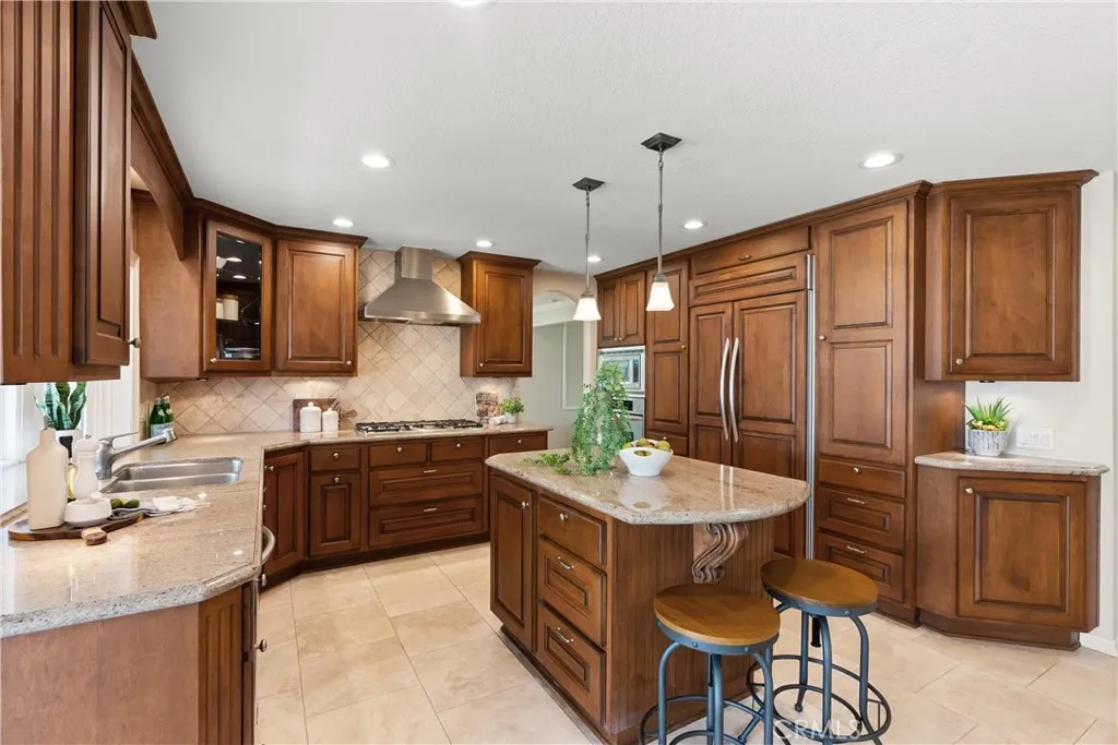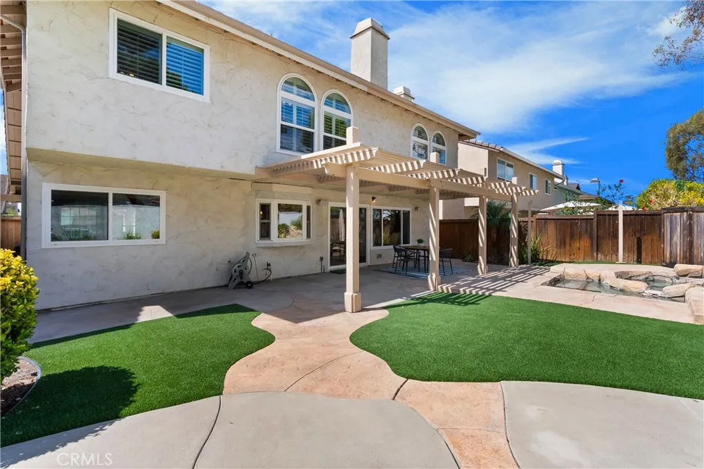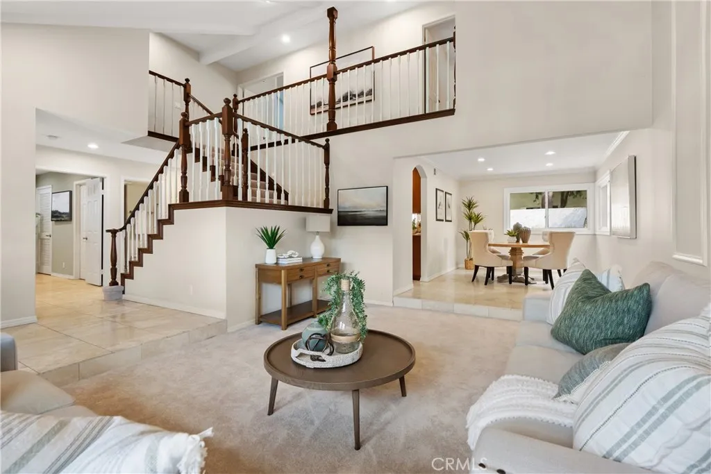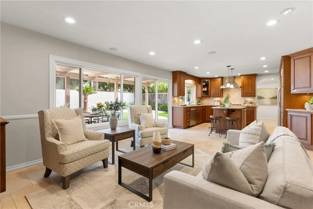 Welcome to this beautifully upgraded 4-bedroom, 3-bathroom home offering 2,496 square feet of versatile living space in the heart of Irvine. Thoughtfully designed with comfort, convenience, and style in mind, this home blends modern upgrades with timeless details. Step inside to soaring vaulted ceilings, custom travertine tile flooring, and an inviting living room filled with natural light. A large formal dining area sets the stage for memorable gatherings, while the open-concept flow from the kitchen to the family room is perfect for everyday living. The chefs kitchen is equipped with rich wood-tone cabinetry, under-cabinet lighting, upgraded dimmer switches, a built-in refrigerator with custom panels, dual ovens, a large center island with pendant lighting and countertop seating. Enjoy the view of the backyard from the charming bay window while entertaining with ease. The family room features custom built-in cabinetry with lighting, an upgraded hearth and mantle fireplace, and wiring for surround sound and a video/audio system. A full bedroom downstairs with a walk-in closet and direct access to a remodeled glass-enclosed walk-in shower bath provides flexible options for guests, multigenerational living, or a home office. Upstairs, retreat to the expansive primary suite through elegant double doors. This private sanctuary features vaulted ceilings, a cozy fireplace with seating area, and a luxurious upgraded bath with dual vanities, a soaking tub, separate glass-enclosed shower, and a spacious walk-in closet with custom organizers. Two additional bedrooms share a fully re