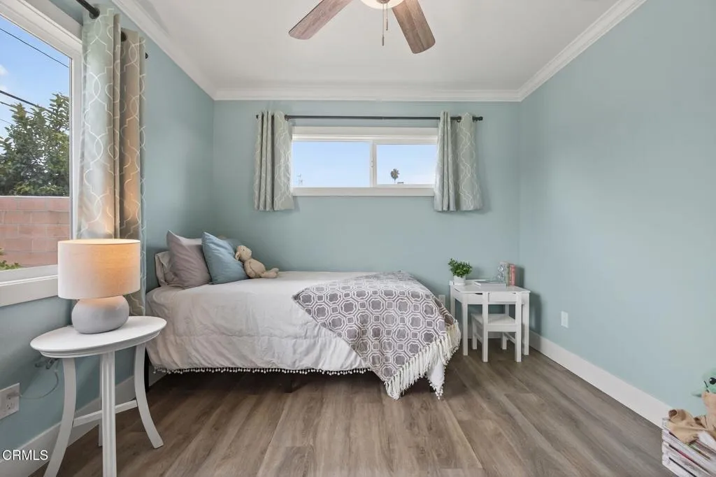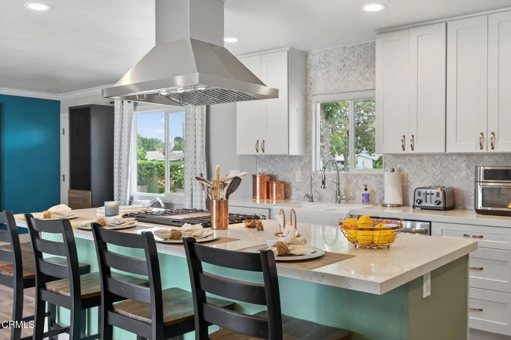 Nestled in a peaceful Camarillo community, this beautifully remodeled single-story home offers 3 bedrooms, 3 bathrooms, and 1,512 sq ft. of thoughtfully designed living space. A welcoming front entrance with rose bushes lining the pathway sets the tone for the charm inside.Extensively remodeled in 2018, the home received a new roof, dual-pane vinyl windows, updated water lines, and upgraded electrical. The bathrooms feature fully tiled bath and shower combos, while the open-concept main living area showcases quartz countertops, a marble backsplash, stainless steel appliances, and a striking 9-foot island with bar seating. Luxury vinyl plank flooring, crown molding, and a wood-burning fireplace complete the inviting space.The versatile ensuite/bonus room adds even more value with a bedroom, closet, kitchen, half bath, sunroom, and a private garden retreat. A two-car garage with epoxy flooring and built-in workbench, RV parking, and a recirculating instant-heat water heater enhance functionality and comfort.Outdoors, enjoy a private backyard highlighted by an orange tree, pear tree, and dwarf hybrid avocado bush. Centrally located near schools, parks, shopping, and dining--and paired with Camarillo's highly desirable year-round climate, this home blends convenience, upgrades, and tranquility in one rare package.