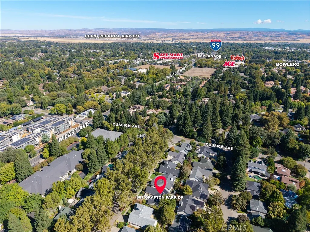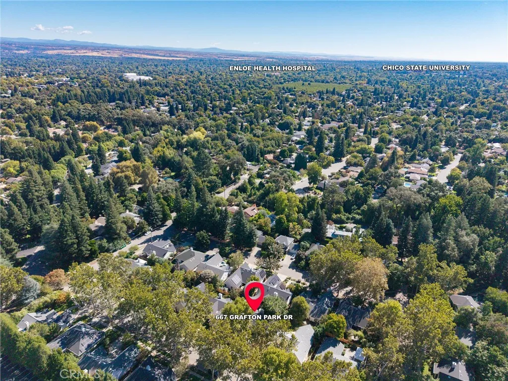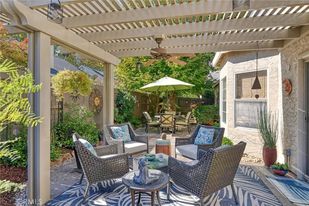Tucked away on a picturesque tree-lined street in Chico, this delightful three-bedroom, two-bathroom home combines storybook charm with modern updates. Inside, youll find soaring ceilings in the living room that create a bright, open feel, complemented by a cozy fireplace. The kitchen is truly impressive with beautiful quartz countertops, a designer backsplash, crisp white cabinetry, and plenty of space for cooking and entertaining. Both bathrooms have been thoughtfully remodeled, and the spacious primary suite features a gorgeous en-suite with a walk-in shower. Fresh paint, newer flooring, newer fencing, and countless designer touches bring a stunning, move-in-ready appeal to every corner of this home. Energy efficiency is also a plus, with solar and a whole house fan. Step outside to your private backyard retreat, complete with beautiful landscaping and a charming pergolaperfect for entertaining or enjoying quiet evenings at home. The attached two-car garage provides ample storage, rounding out this wonderful property. Located in one of Chicos most sought-after neighborhoods, this home offers the perfect blend of charm, style, and comfort.