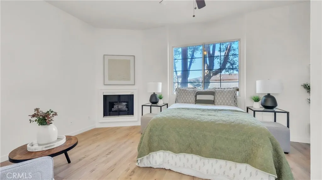 Westside Living at its best in this Fully Remodeled Westchester condo. This unit is open and bright with natural light flowing through the open courtyard through the huge picture window, filling up the spacious and open living room. The living room also features a comforting fireplace and 10' ceilings. The kitchen is beautiful with brand new custom-made white shaker cabinets, paired with black hardware and quartz countertops with an overhang for additional bar stool seating. Just off the kitchen is a dining area and a pantry closet. To top it off, there are brand new Whirlpool stainless steel appliances that will transfer to the lucky new buyer. The primary suite has vaulted ceilings, 3 separate closets, a sitting area next to the fireplace and a fully remodeled en suite bathroom. The 2nd bedroom is spacious with tree top views out of the window. In the hall is a laundry closet with hookups for a stackable washer and dryer. This home also has central heating, A/C, and double paned windows. You also receive 2 tandem parking spaces in the gated secured parking garage. HOA Amenities include a fitness room and Jacuzzi.