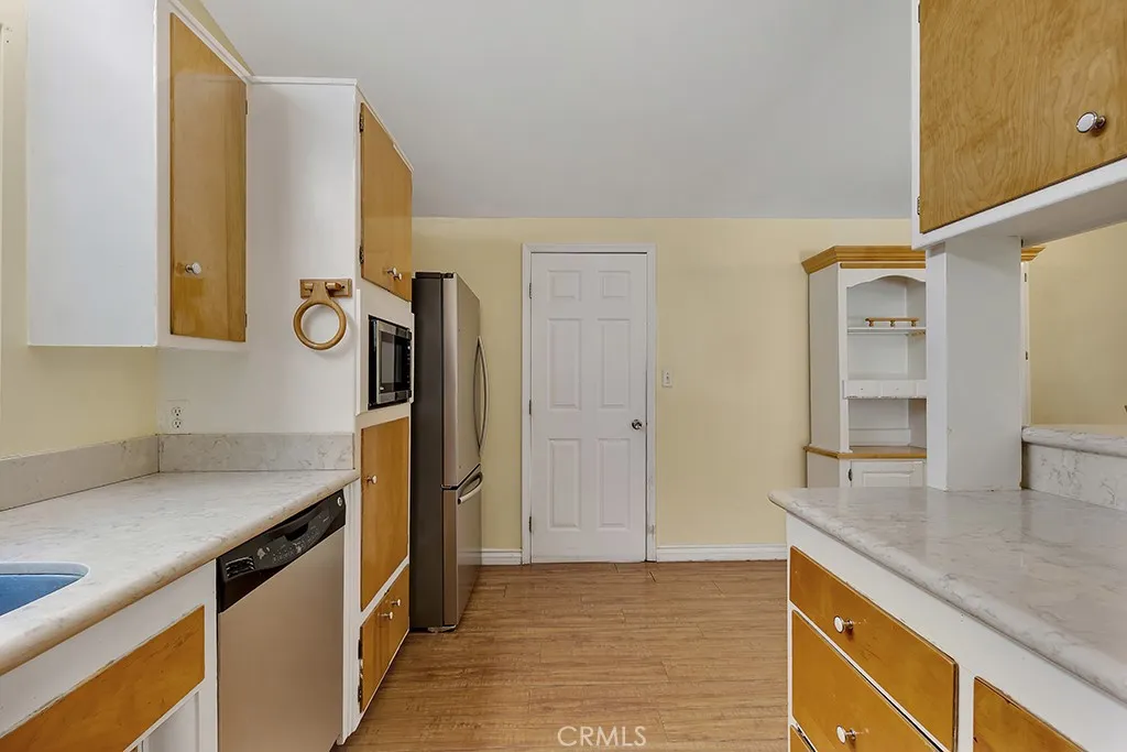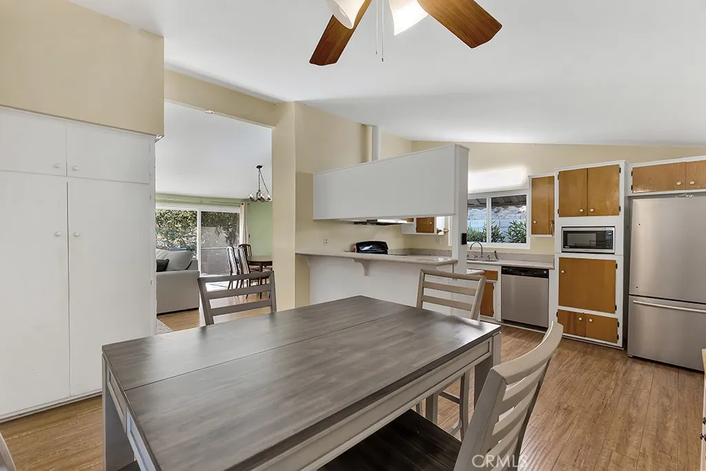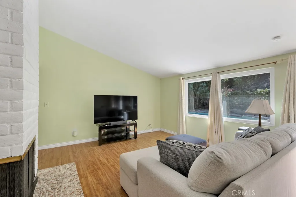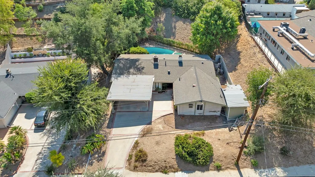 Welcome to this spacious Carlton Terrace pool home! This 4-bedroom, 2-bath, 2,125 sq. ft. single-story ranch offers endless opportunities to make it your own. Step through the bright double-door entry into a foyer that opens to generous living spaces, including a large eat-in breakfast nook, U-shaped kitchen with quartz countertops and bar, formal dining room, a living room with floor to ceiling brick fireplace, and an additional family room created from the permitted garage conversion. Vaulted ceilings in the living and dining areas enhance the open, airy feel while providing views of the sparkling pool and spa. The bedroom wing features four rooms with vaulted ceilings, including a primary suite with dual closets and a walk-in shower. Additional highlights include a tasteful storage shed in the side yard, an enclosed bonus storage area off the family room, and a convenient laundry closet located in the family room. A attractive carport provides shade and protection for your vehicles. Ideally situated, this home is close to shopping, dining, and offers easy access to the 101 freeway.