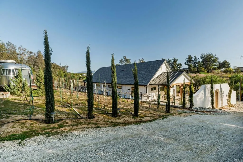 This stunning estate perfectly blends Temecula wine country living with a rare opportunity for fabulous rental income, all on 2.72 acres. Featuring a spacious 3,082 sq ft, 4-bed + office/3-bath main home, plus 4 newly constructed 1-bed/1-bath units totaling an additional 1,945 sq ft, these modern "casitas" were designed with an impeccable eye for style, functionality and rental income or luxurious guest accommodations. Enjoy them as they are now, or they can be easily converted into two duplex units. As you enter the property through the charming gated entrance, you'll appreciate the privacy and spaciousness for all things recreational. With your own sparkling pool, top-of-the-line solar systems, RV parking and actively producing vines, you'll never want to leave your private retreat. Upon stepping into the main home, soaring ceilings and travertine floors guide you to the expansive great room with an inviting wood-burning fireplace. A custom entertainer's kitchen awaits with stainless steel appliances, granite countertops, a Sub-Zero fridge, a 6-burner stove, and a wine fridge. An additional space for formal dining with another stone fireplace greets you at the end of the kitchen. The entry level also includes an office or additional bedroom, a full bath, and laundry room. The custom wrought iron staircase leads to the second floor, where the primary suite and 3 guest bedrooms, plus a guest bath, await. The primary suite boasts an oversized bath with a steam shower and a private balcony with views for days. The backyard off the main home offers a seamless transition to out