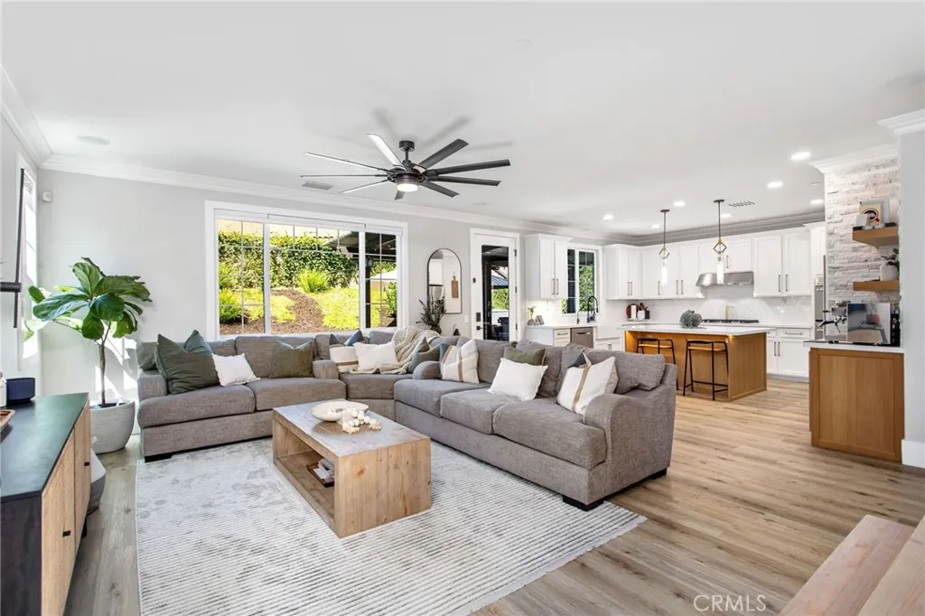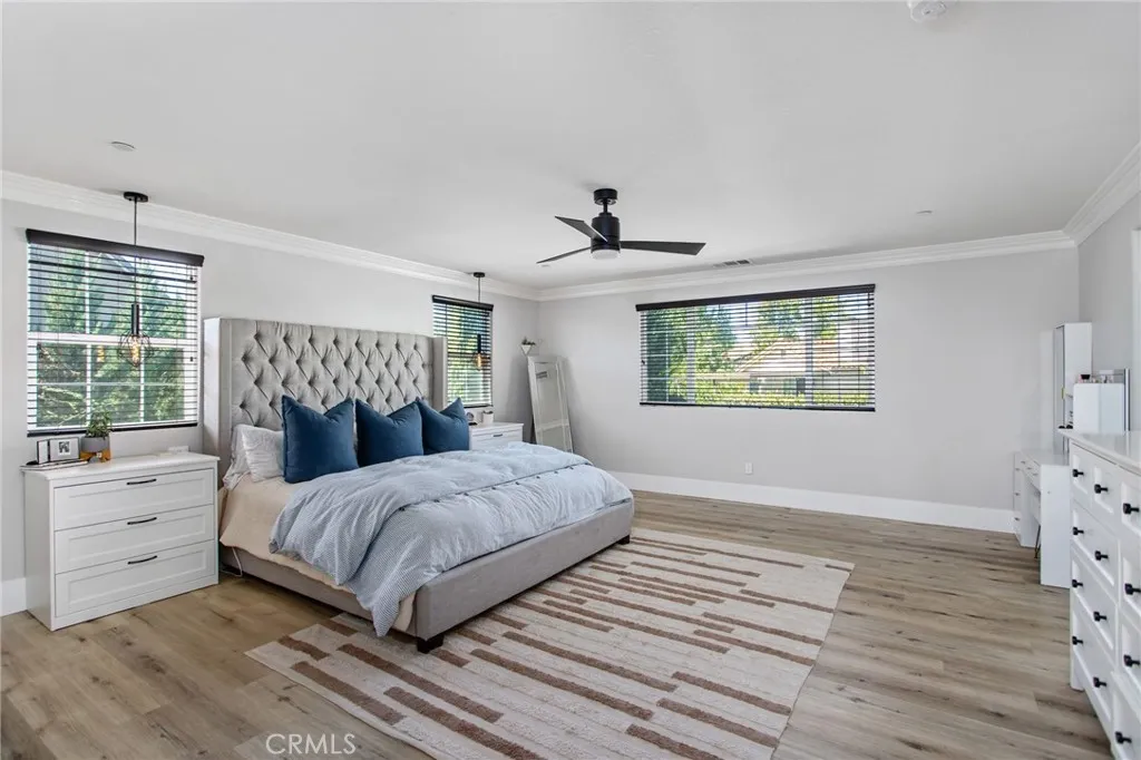 Step inside this light-filled five-bedroom retreat and youll instantly feel the difference. Sunlight pours through soaring dual-pane windows, dancing across open living spaces designed for connection and comfort. From morning coffee in your private backyard to evenings gathered in the chefs kitchen, this home is all about effortless living. The kitchen doesnt just impress, it inspires. A walk-in pantry with glass door, quartz counters, stainless appliances, and an oversized island with bar seating set the stage for everything from quick breakfasts to weekend entertaining. Just beyond, the family room flows seamlessly, so no one misses a moment. Upstairs, the primary suite becomes your sanctuary: plush carpeting underfoot, a generous walk-in closet, and a spa-like bath with dual sinks, glass shower, and soaking tub made for unwinding. Three more bedrooms, a flexible office/game room with custom built-ins and private entry, plus modern must-haves like solar, dual A/C, and ceiling fans mean the home is as functional as it is stylish. And when its time to recharge outdoors? Your backyard oasis delivers: custom hardscape, spacious patio, above-ground spa, and plenty of room to host, play, or simply relax under Temecula skies. Living in Harveston means more than owning a home, its embracing a lifestyle. Imagine weekends strolling along the private lake, cooling off at the Olympic-sized pool and splash park, or cheering at the sports parkall just steps away. Add in proximity to top schools, dining, and shopping, and youve found the perfect blend of comfort, community, and convenie