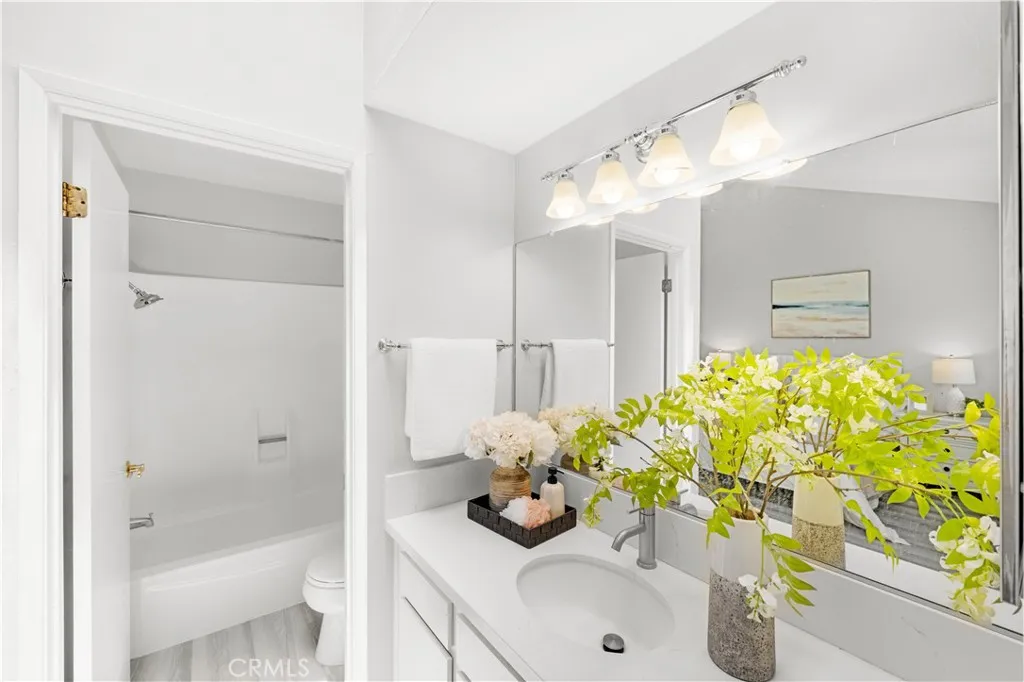 Welcome to this bright unit with soaring ceilings in the heart of The Lake community in Irvine. The spacious second-floor balcony overlooks a serene stream with playful ducks, while the kitchen and bathroom are filled with natural light from the windows and skylight, creating a warm and airy atmosphere. A generous walk-in closet provides ample storage, and the new AC and heater (installed in 2023) save you from major replacement costs for years to come. The in-unit laundry is a rare find among nearby apartment communities. This quite, well-kept community features a pool and tennis courts, with HOA covering water and trash, and no Mello-Roos offering exceptional value. Located within the boundaries of top-rated schools and close to kids' favorite Castle Park, the urban Hicks Canyon Trail, grocery stores, and restaurants, this move-in ready home is truly a little gem to call you own.