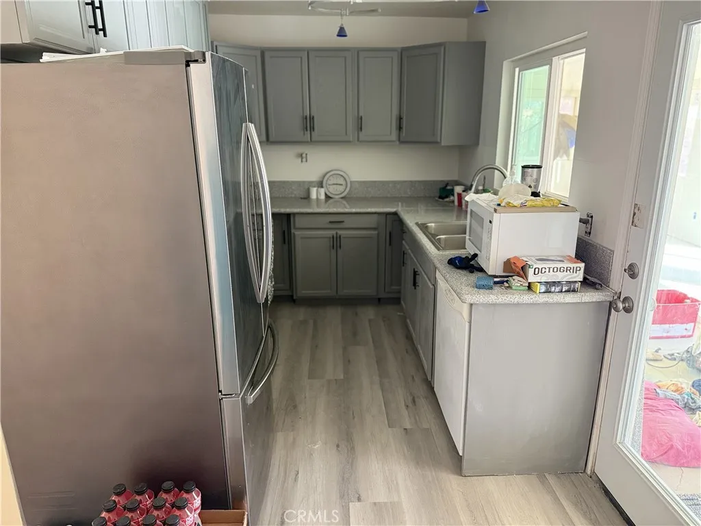 **Welcome to this beautifully remodeled 2-bedroom, 1-bath home offering 720 sq. ft. of stylish living space.** Every detail has been thoughtfully updated inside and out. Fresh exterior and interior paint give the home a clean, modern look, while an upgraded fence fully encloses the property for added privacy. A new oversized enclosed patio with two wall A/C units expands the homes livable space, providing year-round comfort. Step into the large backyard retreat, designed for both relaxation and entertaining. Enjoy low-maintenance turf landscaping, a custom stone patio slab, decorative landscape lighting, and two stunning waterfalls that create a serene ambiance. Inside, upgrades shine with new laminate flooring, trim, and baseboards throughout. All-new vinyl dual-paned windows and sliding glass doors bring in natural light while improving energy efficiency. The kitchen features granite countertops, resurfaced cabinetry, and a fresh modern feel. The bathroom has been completely remodeled with decorative tile, an upgraded vanity, new toilet, and a sleek shower glass door. This move-in ready home is truly turnkeyperfect for those who appreciate quality upgrades, stylish finishes, and a relaxing outdoor space.