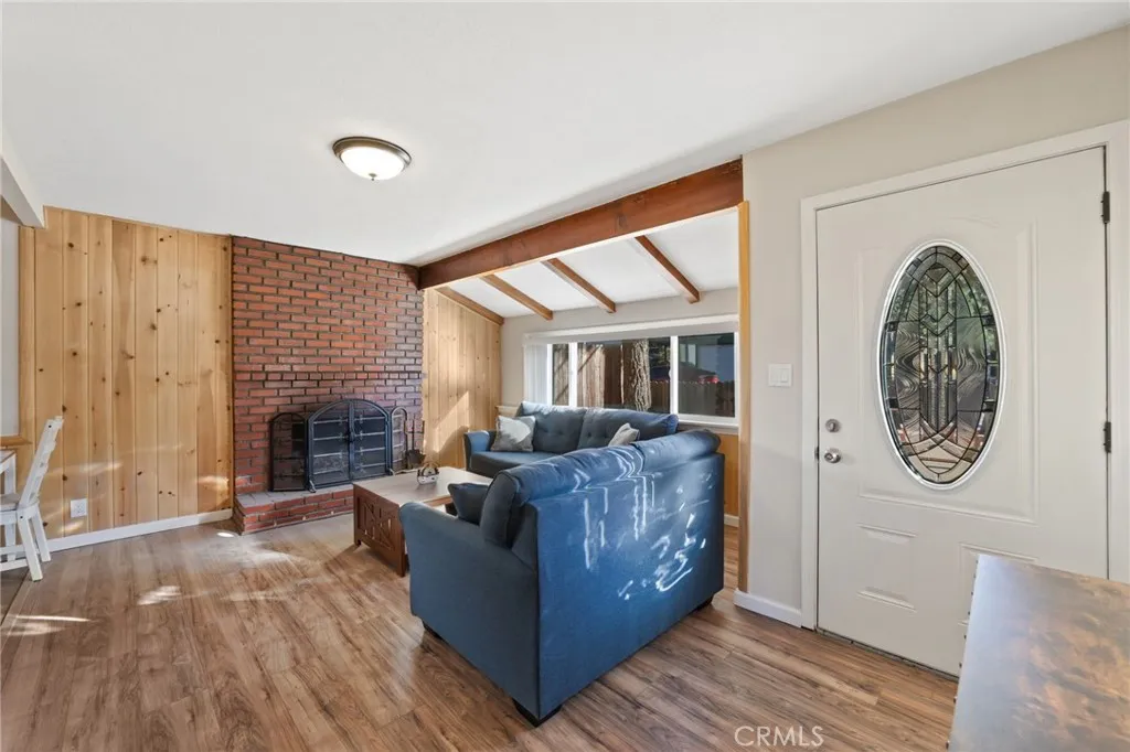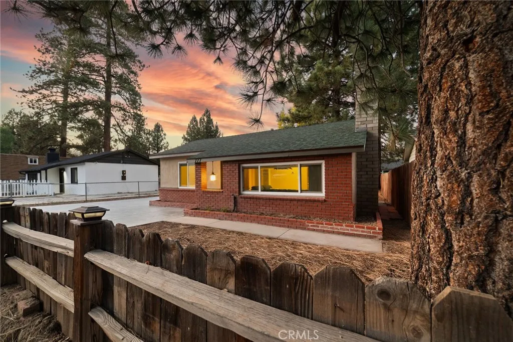 Welcome to this charming Big Bear cottage a turnkey mountain retreat with a spacious driveway, detached two-car garage, and potential RV parking. Perfect as a cozy getaway or short-term rental, this home is ideally located in Big Bear City, just minutes from Big Bear Lake, Big Bear Airport, Bear Mountain Ski Resort, the Big Bear Convention Center, popular local dining, and convenient access to Highways 38 and 18. Inside, youll find a warm and inviting atmosphere featuring wood floors, a cozy fireplace/hearth, and an updated kitchen with modern finishes. The home includes an indoor washer and dryer, vinyl windows, freshly painted interiors, and an updated bathroom. All appliances and furnishings are included, making this a truly move-in-ready opportunity. Enjoy the peaceful outdoor setting on the private rear patio, complete with market lighting and surrounded by tall pine trees the perfect spot to relax and take in the mountain air. Dont miss your chance to see this attractive Big Bear cottage its everything you need for your next home or investment in the mountains!