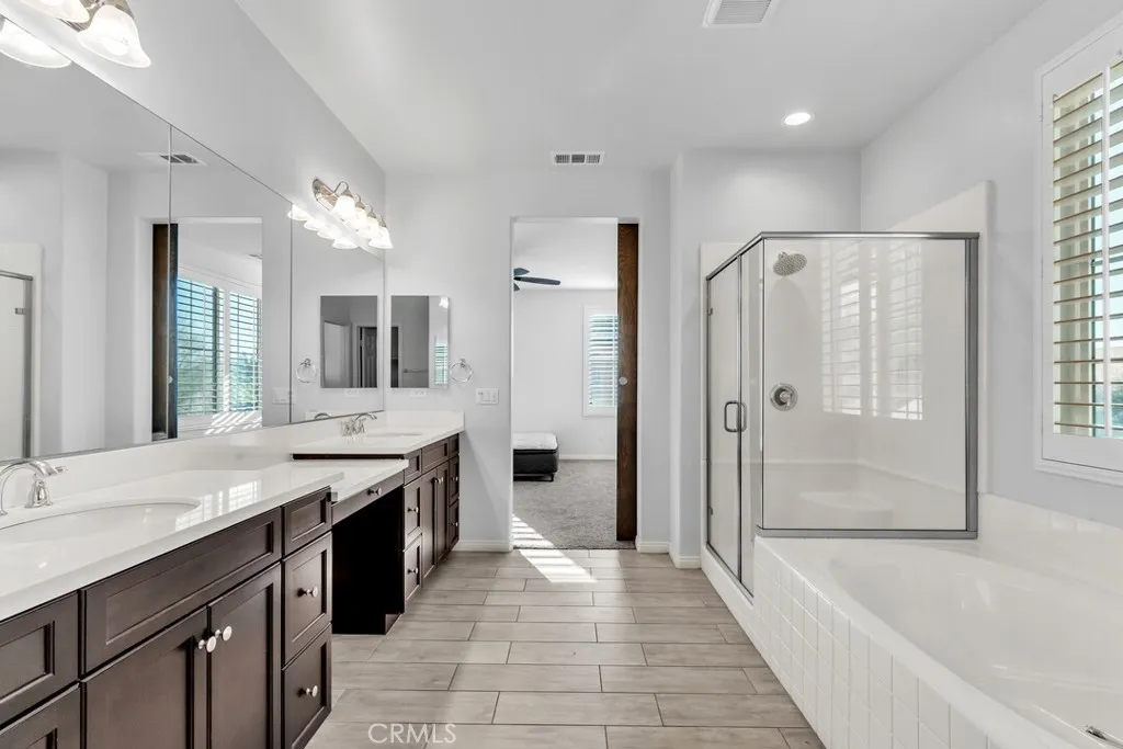 Welcome to one of the most affordable large family homes in Wildomar! This 4-bedroom, 3-bathroom home built in 2017, offers over 2,800 square feet of modern living space. Thoughtfully designed with style and comfort in mind, this home features energy-saving solar, plantation shutters and designer flooring throughout. The open-concept floor plan flows seamlessly from the spacious living room into a large kitchen complete with granite countertops, a large center island, stainless steel appliances, and upgraded cabinetry perfect for entertaining or family gatherings. Upstairs, retreat to a primary suite featuring an ensuite bath with dual sinks, a soaking tub, and an extra large walk-in shower. Three additional spacious bedrooms, a loft and a full bath upstairs provide plenty of room for family, guests, or a home office. The home also includes an attached two-car garage with tankless water heater and a convenient upstairs laundry room. Located in a desirable Wildomar neighborhood close to parks, schools, shopping, and freeway access, this home blends contemporary style with everyday convenience. Professional photos will be posted 10/24.