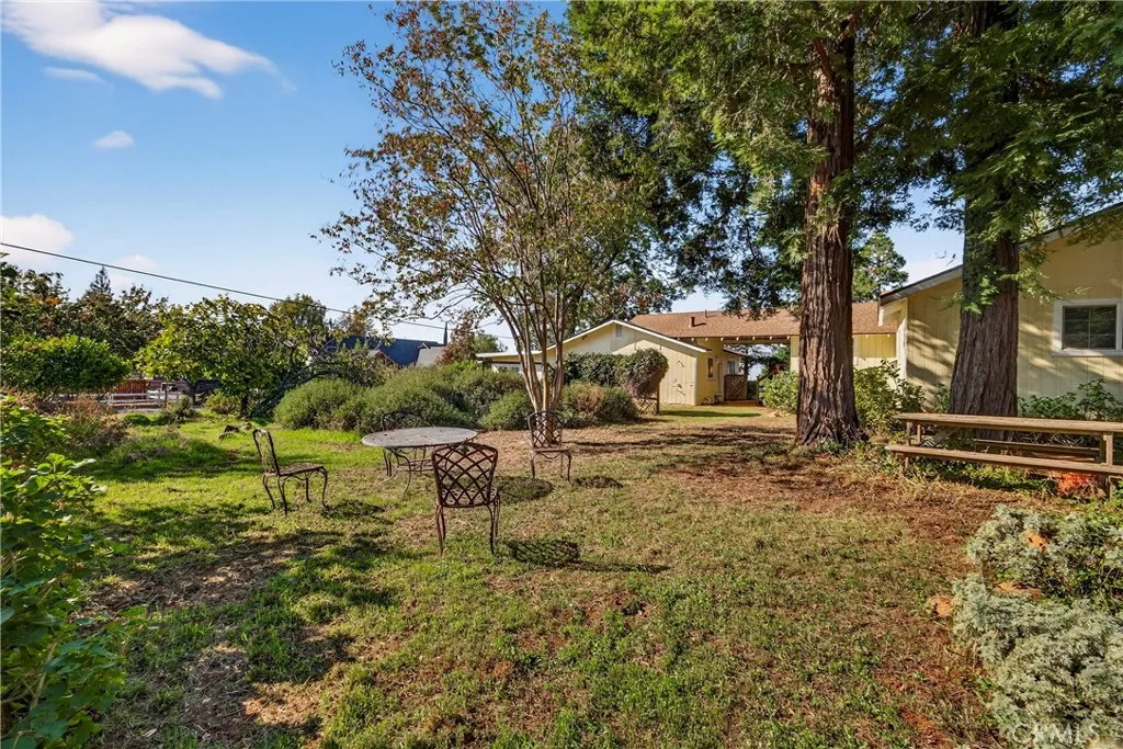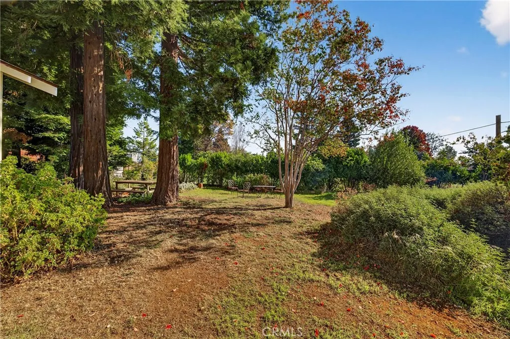 Wonderful Lower Paradise Location for this 1800 square foot 3-bedroom 2 bath home. This area has a great country feeling. 2025 New Roof. Fully fenced and lined with mature landscaping this property captures the essence of traditional paradise living. As you enter the gate you are invited in amongst the trees to a private park like 1.03 acre setting that is overflowing with Life. Just a few of variety of trees found on the property are cedar, birch, cherry, apple, fig, almond, Japanese maple, lemons, cactus and beautiful mature redwood trees. The covered front porch has a warm and inviting feel. The front door invites you into the focal point of the living space. The living room offers vaulted knotty pine ceilings, free standing wood stove, dual pane windows and skylight all works together to create a cozy living room to gather with friends and family. On the north side of the home the hallway leads the way to a spacious guest room as well as the Primary suite. The generously sized primary has dual pane windows, slider to backyard and walk in closet. The primary bath offers claw foot tub, walk in shower and solid surface dual vanities. The sliding glass door opens up to rear landscape and a unique feature you will certainly love. The circle of redwoods creates a unique space to enjoy your early morning coffee, or a star lit sky. At the south end of the home you will find the kitchen, dining, built in linen storage, guest bathroom, and the 3rd and final guest bedroom. The third bedroom benefits from a walk in closet and unique built in space. Reading nook, play area or a quie