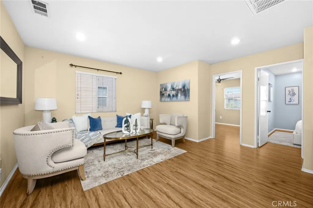 Tucked within a quiet cul de sac of a desirable newer home enclave in Azusa, this spacious 4 bedroom, 3 bathroom residence offers nearly 2400 square feet of elevated living. Homes in this pocket rarely come on the market. The impressive two story foyer welcomes you with dramatic volume, abundant natural light, and an airy sense of scale carried throughout the formal living space. The kitchen is generous in size with stainless steel appliances, an oversized island, extensive cabinetry, and a charming breakfast nook, opening seamlessly to both the dining room and the covered outdoor patio. It is ideal for effortless indoor and outdoor dining and gathering in any season. A main level bedroom with a full bathroom is perfect for overnight guests or multigenerational living. Also located downstairs is an individual laundry room and a direct access 2 car garage with epoxy flooring. Upstairs, a spacious loft offers the perfect setting for movie nights or a comfortable second living room. The primary suite is exceptionally large, offering space for a sitting room, office area, or personal retreat, along with two side by side walk in closets. The upper level is completed with two additional bedrooms and a full hallway bathroom. Additional highlights include a newer AC system, a low maintenance yard, and the rare advantage of no HOA and no Mello Roos. This neighborhood feels tucked away and peaceful, with convenient access to shopping and dining, and is just a short walk to Zacatecas Park which acts as the community gathering park with ballfields, fitness course, playgrounds, and picn