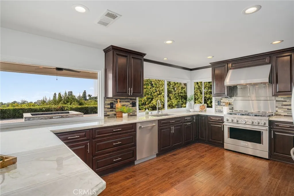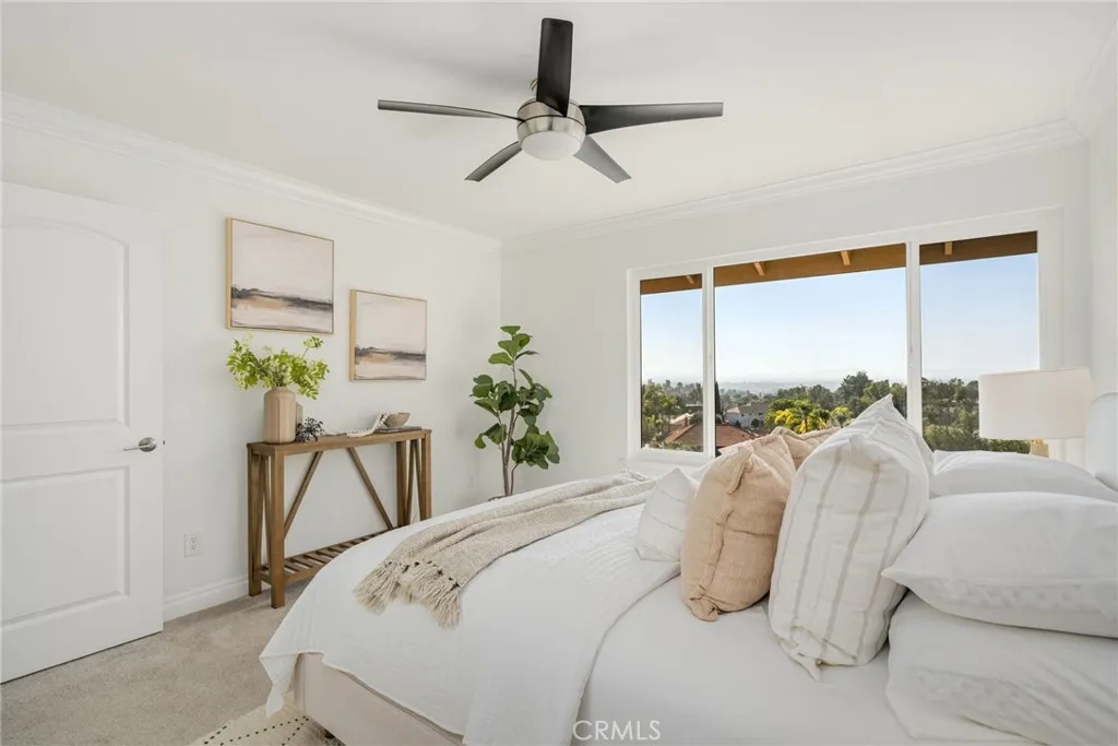 Welcome to 16126 Lomacitas Lane beautifully updated in the heart of Whittiers coveted Friendly Hills community-this 5-bedroom, 3-bath home combines modern improvements with timeless appeal, offering an ideal blend of comfort, style, and California living. From the moment you step through the front doors, be greeted by sweeping views to Long Beach and the Pacific Ocean. From its elevated position your views continue from every room in the rear of the house and back yard providing a breathtaking backdrop for everyday living and evening sunsets. Offering an updated kitchen and baths, fresh interior paint, recessed lighting, custom stair case bannister, updated windows and sliders, new interior doors, crown moulding and stunning custom double door entry. One bedroom is conveniently located on the first floor, perfect for guests or multi-generational living. The remodeled primary suite provides a private retreat, complete with a spa-inspired air jet bath with chromatherapy lights, electric fireplace, rainfall shower designed for relaxation, walk-in closet and custom cabinets. Step outside to your backyard oasis featuring an updated salt water pool with solar powered heating system, party-sized spa, fire pit and covered patio, perfect for entertaining or simply unwinding under the Southern California sun. With solar and battery backup paid in full, energy efficiency comes standard. 16126 Lomacitas Lane is more than a homeits a lifestyle. Modern comfort, captivating views, tree lined streets and community charm all come together in one unforgettable property.