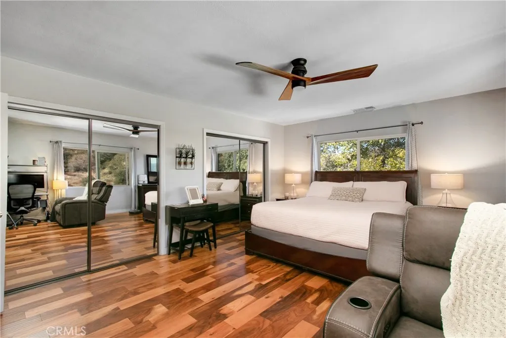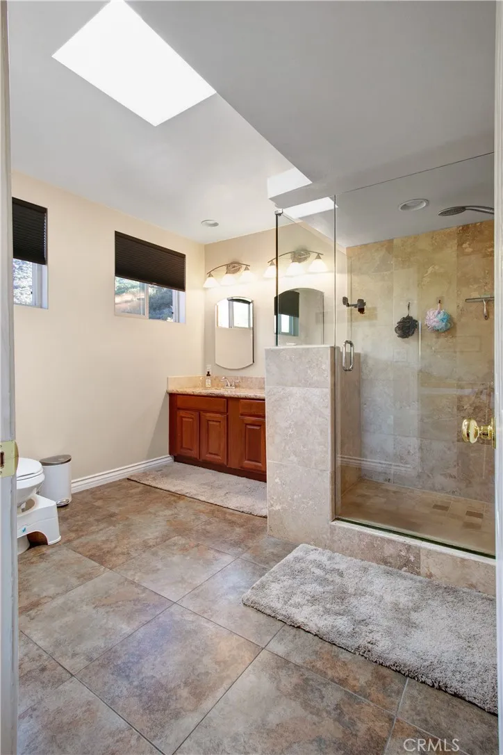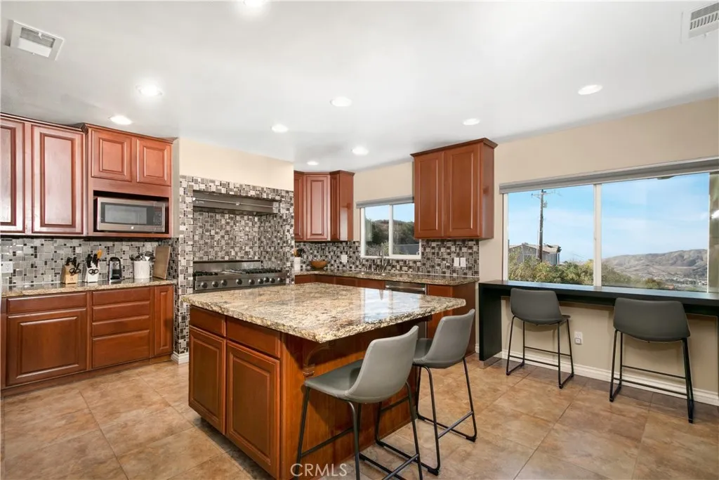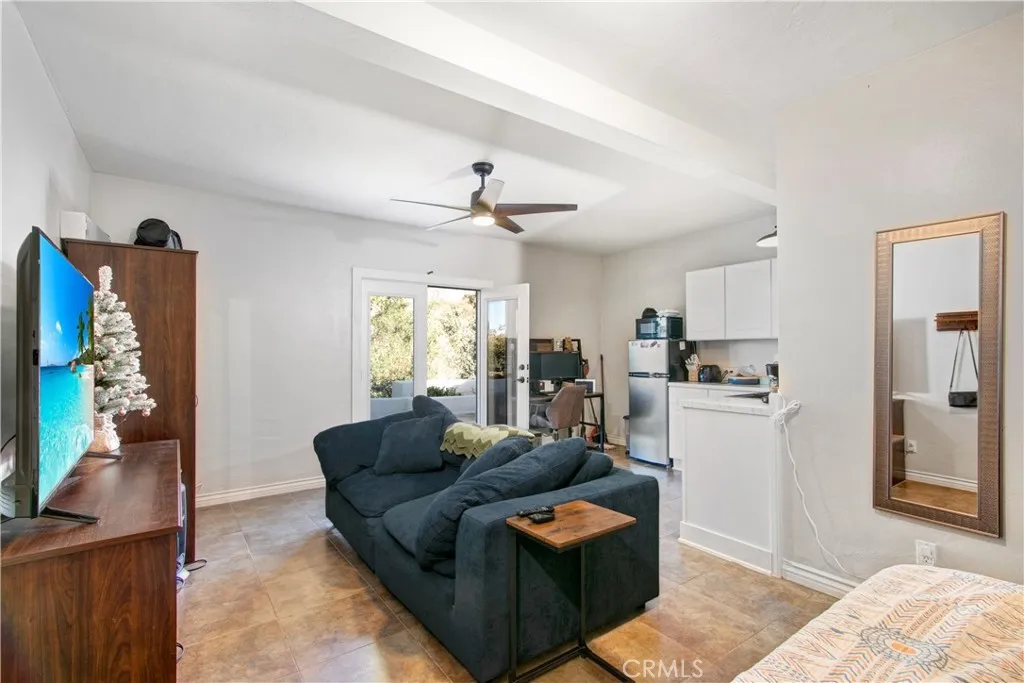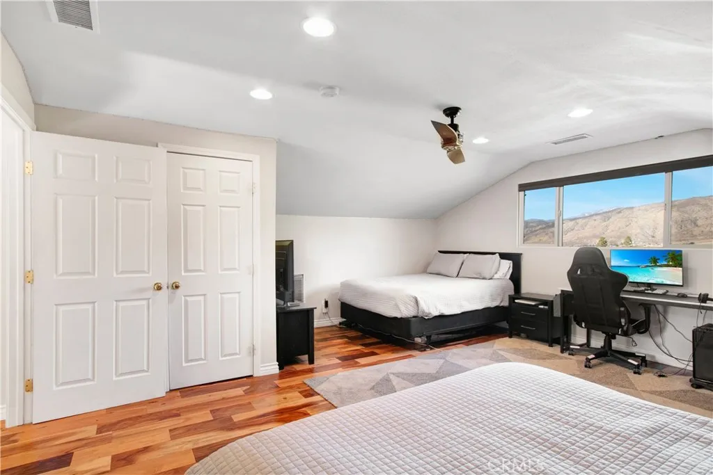 ENJOY MOUNTAIN VIBES WITHOUT THE MOUNTAIN DRIVE! Completely renovated in 2015, this Yucaipa hilltop property is designed for modern living, with one primary feature being a self-contained 400 sq ft studio apartment on the ground floor. Offering a private entrance, a kitchenette, and a full bathroom, this versatile space is the perfect solution for extended family, a home business, or a valuable source of rental income. The kitchenette is equipped with a dishwasher, garbage disposal, a large stainless steel sink, and space for a refrigerator. Ample countertop space allows for convenient use of an air fryer/oven and a stovetop burner. The remainder of the ground level includes the two-car garage with 180 sq ft of additional storage space, and a versatile bonus room perfect for a home theatre, wine room, or workout space. Level two, the main floor, features the front entry. There's a spacious kitchen with a large island, a cozy family room, a convenient half bath, a living room with a fireplace, a bonus space ideal for a home office with amazing views, and two primary bedrooms, each with an ensuite bathroom. The main level also has a deck, perfect for enjoying the panoramic views. The third level includes a landing, two generously sized storage closets, and a primary bedroom with an ensuite bathroom and walk-in closet. The fully landscaped property has a fenced area for relaxing by the pool and spa. For added convenience, 30-amp power and a sewer cleanout are available near the garage, providing the option of accommodating guests in an RV. Additionally, there are 46 solar pane