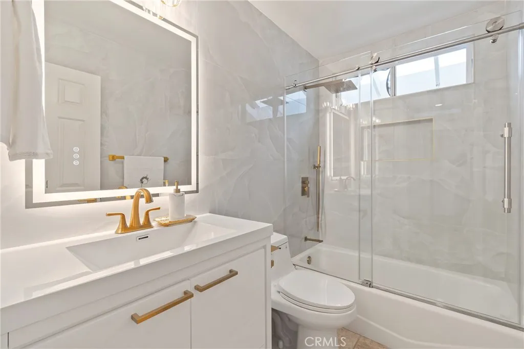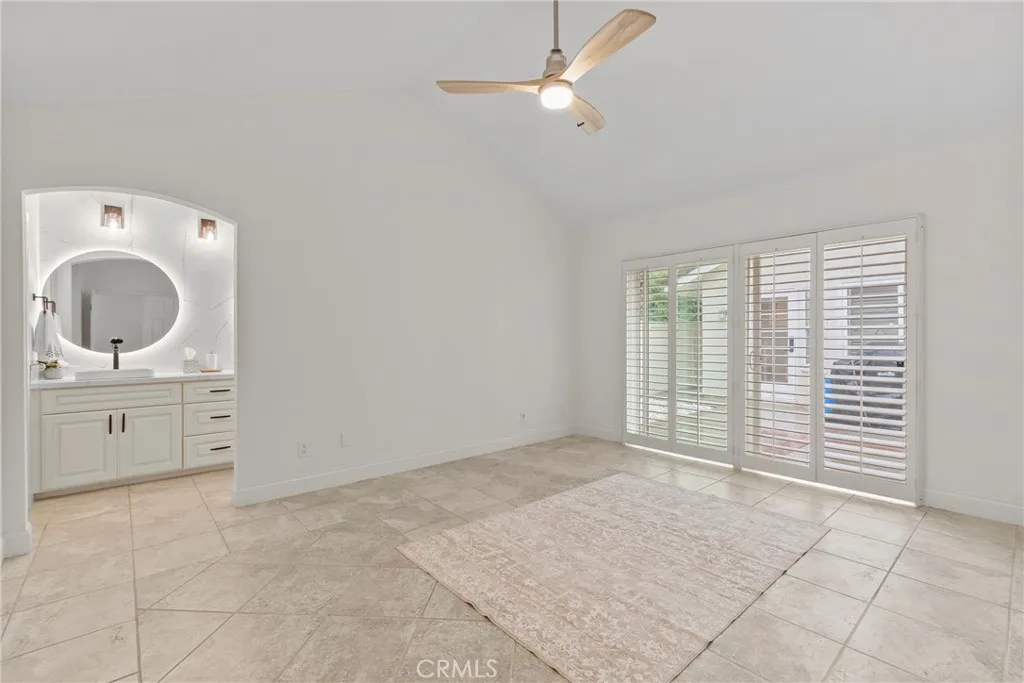 Exquisitely Remodeled Single-Level END UNIT Home in Prestigious Woodbridge Lakeside Community Experience refined living in this beautifully remodeled single-level residence, ideally situated just a short stroll from the lake. Featuring 3 spacious bedrooms and 2 luxurious baths, this home showcases meticulous attention to detail throughout from the smooth-finished walls and elegant tile flooring to the expansive vaulted ceilings that fill the open-concept layout with natural light. The designer-inspired kitchen is a true showpiece, boasting quartz countertops, a dramatic waterfall island, custom backsplash tiles, and top-of-the-line built-in stainless steel appliances including a 36 gas range, hood, microwave drawer, dishwasher, and refrigerator. Three sets of custom French doors open to a serene private courtyard perfect for entertaining or relaxing outdoors. The primary suite offers direct courtyard access, a generous walk-in closet, and a spa-like bath adorned with premium Spanish tiles, dual-sink quartz vanity, LED mirrors, and a frameless glass walk-in shower. The secondary bath features beautiful European tilework, frameless glass enclosure, and modern vanity. Additional highlights include a convenient indoor laundry area, direct-access two-car garage with high-quality epoxy flooring, LED recessed lighting, designer fixtures, remote-controlled ceiling fans, and a stunning tiled fireplace. Enjoy all the resort-style amenities Woodbridge is renowned for two picturesque lakes with sandy lagoons, boating, fishing, BBQ areas, fire pits, lush greenbelts with scenic trails