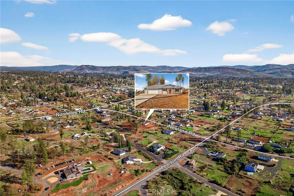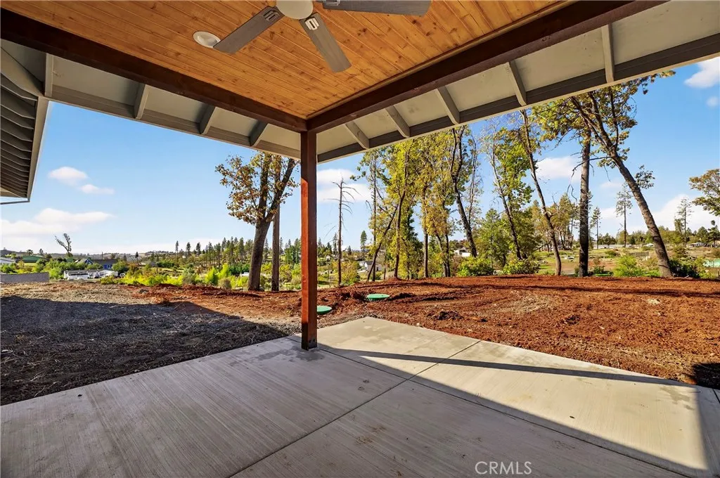 Fantastic Central Paradise location for this 2025 Custom Home, built by Frost Construction a long time Paradise builder. Great VIEWS of the Sutter Buttes, Coastal Mountain Range and the valley. The home offers Owned Solar 3.08 KW system, 7 panels with microinverters. An expansive .70 acre lot, plenty of room for a shop or outbuilding. R.V. parking with electricity. Landscaped front yard on drip system. Boasting a generous 1,021 square feet of living space, this home features top-notch craftsmanship and modern amenities. Upon entering, you'll be greeted by a charming 96 square foot covered front porch with a craftsman-style front door and custom shutters. Step inside to discover an open floor plan that seamlessly connects the living room, kitchen, and dining area. The kitchen is a chef's dream with granite countertops, stainless steel appliances, recessed LED and pendant lighting, and a stylish island for added convenience. The primary bedroom is a serene retreat with crown molding, a slider leading to the covered patio, and a well-appointed en-suite bathroom featuring granite counters and a step-in shower. The guest bedroom also offers crown molding and access to a sleek guest bathroom with granite countertops and a tub/shower combination. The home features gorgeous Vinyl Plank flooring throughout. Outside, you'll find a spacious 114 square foot covered patio with recessed lighting and a ceiling fan, perfect for outdoor entertaining. Additionally, the oversized two-car garage, measuring 23'5" wide by 25'10" deep, includes a laundry area. Plenty of space for a boat, trailer,