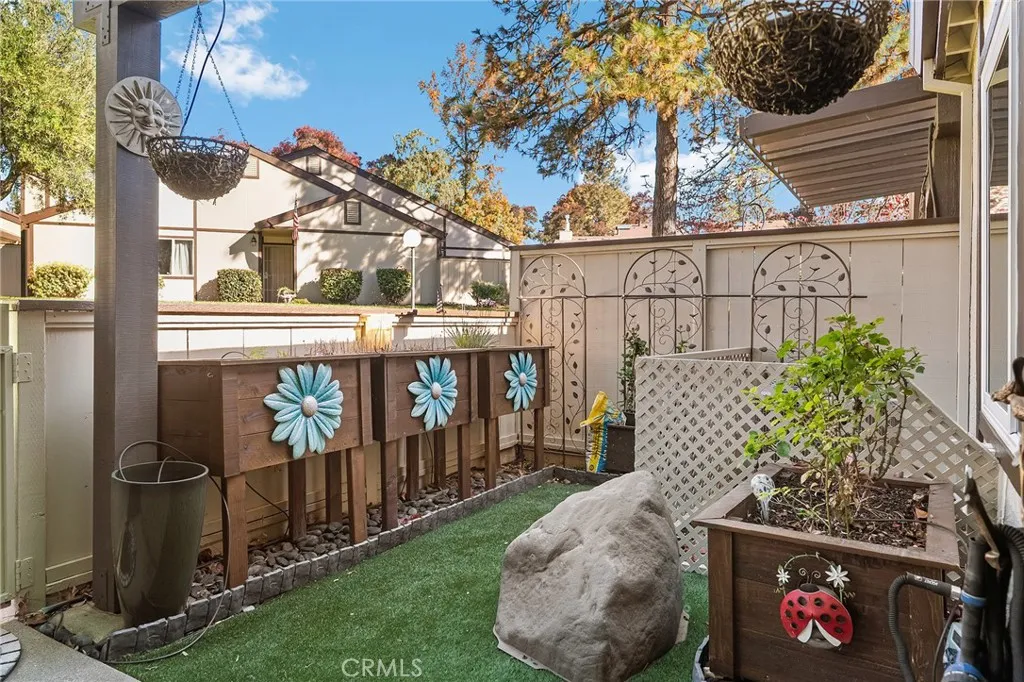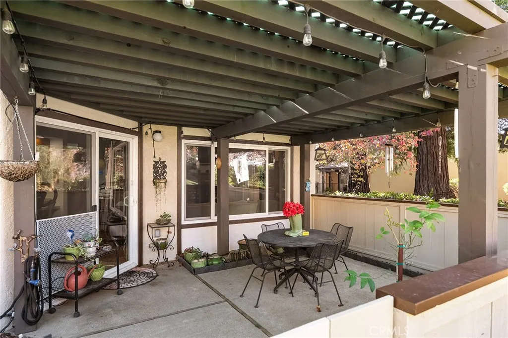 This beautifully cared for 2 bedroom, 2 bathroom end-unit townhouse feels like home the moment you step inside. With only one shared wall, youll love the extra sense of privacy and quiet this space offers. Step through your private, gated front courtyard into an open and airy living area filled with natural light, vaulted ceilings, and a cozy gas fireplace that makes the home warm and welcoming. The kitchen flows easily into the dining and living areas, making it a comfortable space for cooking, gathering, and everyday living. Theres plenty of storage throughout, with thoughtful details that make organization simple. The spacious master suite includes double closets, an ensuite bathroom, and a peaceful view your own little retreat at the end of the day. Enjoy your morning coffee on the covered back patio overlooking one of the best views in the community, or relax in the front courtyard shaded by mature trees. With an indoor laundry area, 2 car garage, and close proximity to the pool and clubhouse, this home truly has it all. Stoneridge offers beautifully maintained grounds and a true sense of community. Conveniently located near the Paradise Performing Arts Center, library, local dining, and shopping, its the perfect blend of comfort, connection, and convenience.