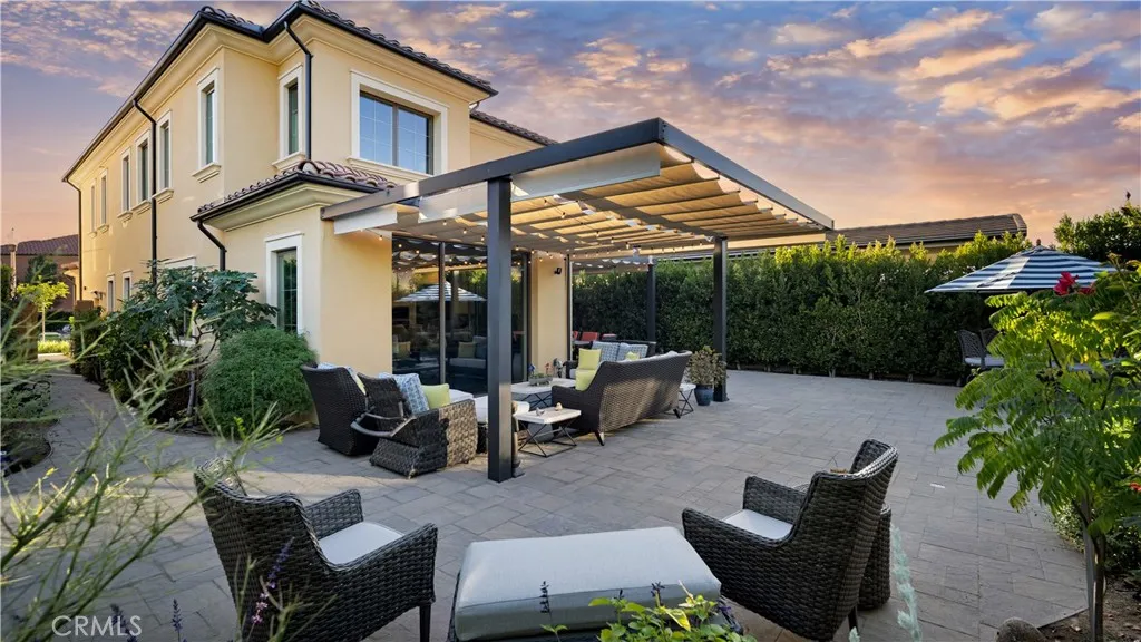 Nestled inside the GUARD GATED hillside enclave of the The Reserve at Orchard Hills, this single family residence sits on a PREMIUM LOT with NO HOMES BEHIND YOU. Mature privacy hedges and trees frame a backyard with two covered patios with string lights, a rose garden and mature trees. Wide floor to ceiling SLIDING GLASS DOORS open the home for optimal entertaining and indoor/outdoor living. Upon entering the home, you will notice the warm HARDWOOD FLOORING and HIGH CEILINGS, creating that open, airy feel. The great room flows to an upgraded chef's kitchen with WOLF APPLIANCES, inset white cabinetry, SMART HOME features such as Alexa controlled lighting and shades, CUSTOM BACKSPLASH, clear-panel PANTRY door with generous STORAGE. A MAIN FLOOR BEDROOM with a FULL BATH adds welcome flexibility for guests or multigenerational living. Upstairs, a bright LOFT offers an extra living spaceperfect for a media lounge or study zone AND three additional bedrooms and each CLOSET is upgraded throughout. The primary suite has views opening to the hillside with sitting area and generously sized bathroom with WALK IN CLOSET. The upstairs bathroom was REIMAGINED with a walk-in shower and NEW CUSTOM TILE. Practical luxury continues in the garage with sleek EXPOXY floors, CUSTOM SLIDING BUILT IN STORAGE, an EV charger, and a monitored SECURITY SYSTEM. Life at The Reserve delivers the Orchard Hills lifestyle people move to Irvine for: SCENIC TRAILS that wind along the groves, RESORT STYLE POOLS and clubhouses, parks and tennis courts, and a calm, elevated setting above the city. Everyday conve