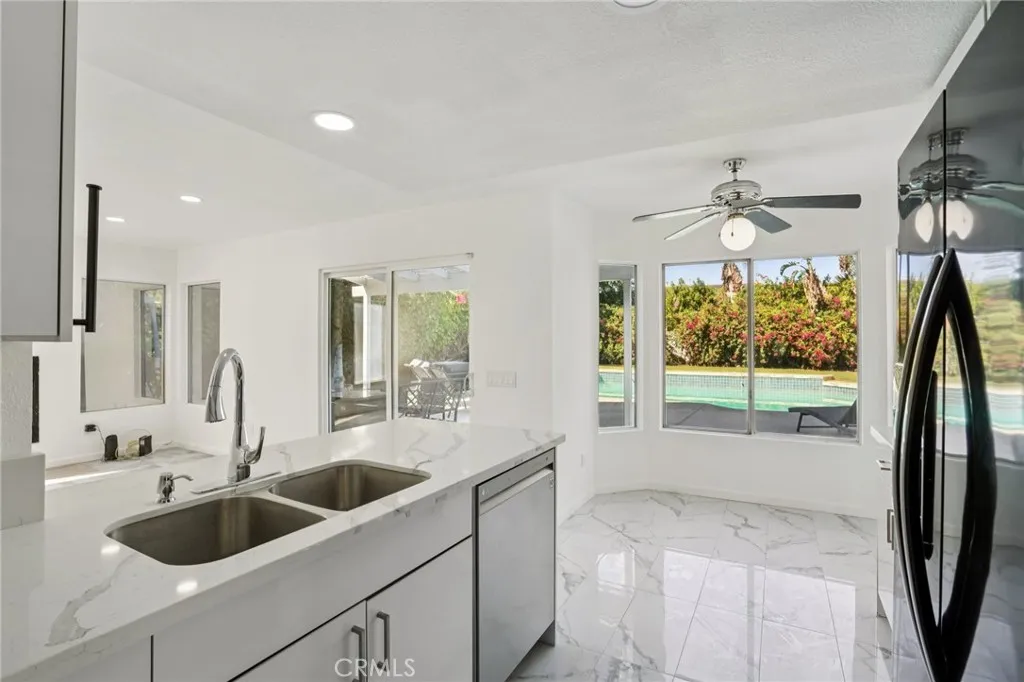 Welcome to this stunning 3-bedroom, 3-bathroom home offering 1,875 sq. ft. of bright and modern living space on an expansive 8,276 sq. ft. lot. Step inside to discover new floors, fresh interior paint, and high ceilings enhanced by elegant recessed lighting throughout.The inviting family room with a cozy fireplace sets the perfect tone for relaxing evenings, while the bright and spacious kitchen boasts quartz countertops, ample cabinet space, and plenty of natural light ideal for any home chef. Each bedroom is generous in size, offering comfort and style, and the remodeled bathrooms add a touch of modern luxury. Enjoy true California living in your entertainers backyard, featuring a sparkling pool, soothing jacuzzi, covered patio for gatherings, and lush green landscaping that creates a private oasis. Located in the highly desirable Panorama neighborhood, this move-in-ready home perfectly blends comfort, style, and convenience a rare find you wont want to miss!