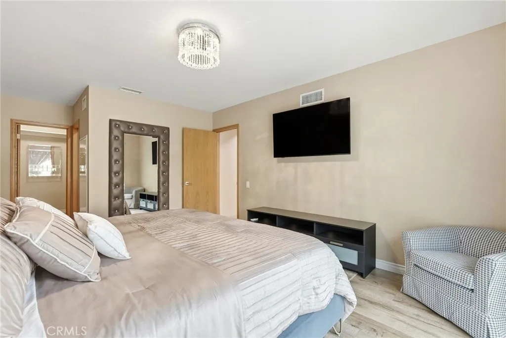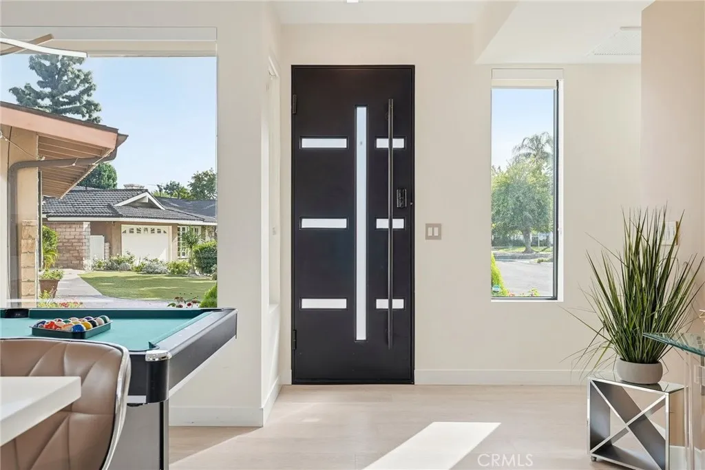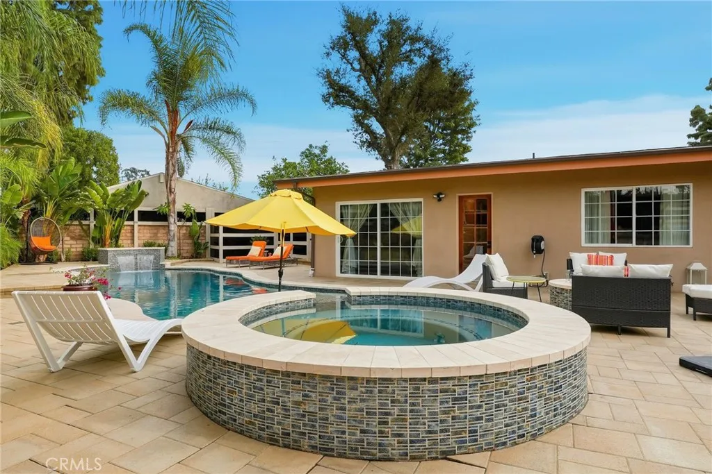Experience modern California living at its finest with a seamless blend of traditional charm and contemporary design. From the moment you arrive, the striking black entry doors set the tone, highlighting the contrast between the classic single-story main residence and the sleek two-story ADU. The main residence offers approx. 2,211 sq ft with 3 bedrooms and 2 bathrooms and features a bright open layout with elegant updates throughout. The spacious living and dining areas flow into the remodeled kitchen with quartz countertops, custom cabinetry, stainless-steel appliances, and a large breakfast bar ideal for gatherings. A gas fireplace adds warmth to the main living space. The serene primary suite offers a walk-in closet and an updated en-suite bath overlooking the pool. Additional bedrooms provide versatility for guests, family, or a home office. A hallway laundry area with cabinetry adds convenience. Upgrades include paid solar, updated electrical, a tankless water heater, EV charger, a newer roof, and a recently replastered pool, offering comfort, reliability, and efficiency. The outdoor space is an entertainers retreat with a sparkling pool and waterfall wall, modern firepit lounge, second firepit, and an expansive covered patio with a full outdoor kitchen equipped with a pizza oven, charcoal grill, refrigerator, freezer, beer tap, beverage bar, sink, and ample seating. A storage area with a shed and an outdoor shower add practicality. The side yard includes a third firepit, mature fruit trees, and space ideal for storage or potential JADU. The modern ADU, fully permitte