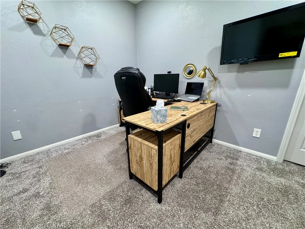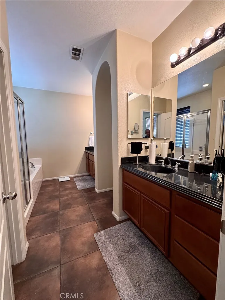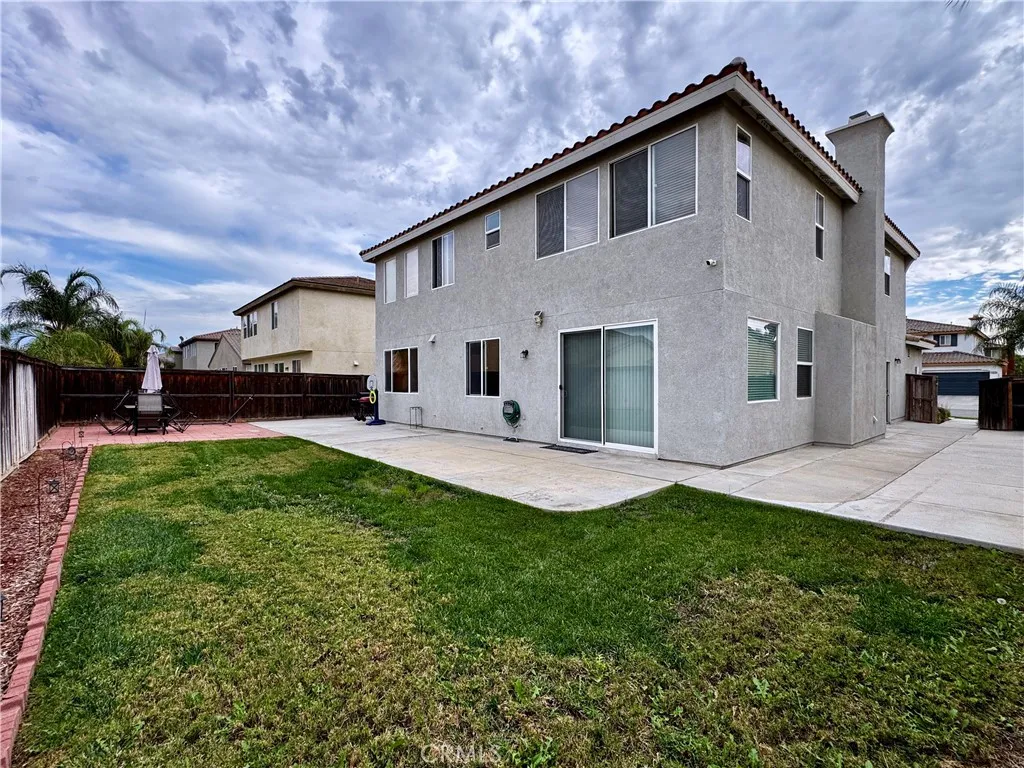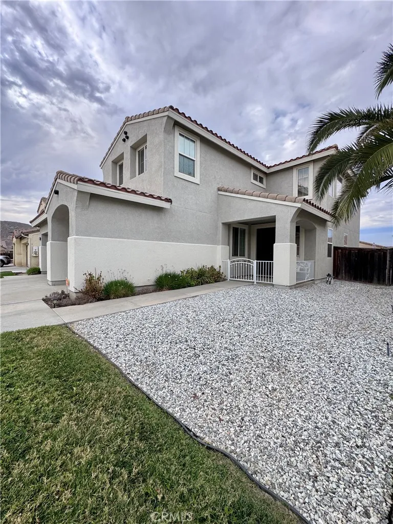 Welcome to your next chapter at 2873 Pansy Way, a thoughtfully updated and spacious home that blends comfortable family living with modern ease. Located in a quiet San Jacinto neighborhood just steps from a local park, this 4-bedroom, 3-bath residence spans approximately 3,042 sq ft on a generous 7,405 sq ft lot. From the moment you arrive, youll appreciate the curb appeal: a wide driveway leading to a three-car garage, plus a gated front patio that offers both charm and a private welcome. Step inside and youll be greeted by soaring ceilings and abundant natural light, creating an open and inviting atmosphere. The main level features a full bedroom and bath, ideal for guests, in-laws, or anyone desiring privacy without navigating stairs. The heart of the home features a seamless flow from living room to dining to kitchen, making entertaining a breeze. Sliding doors open to a large backyard, plenty of space to grill, play, or entertain. Upstairs youll find the oversized master suite with a generous ensuite bath, and two additional bedrooms (one currently used as a media room) offering flexibility for family, hobbies or work-from-home life. Inside youll find modern touches throughout: newer flooring, plush carpet, fresh interior paint, granite counters, recessed lighting, high ceilings, and even a walk-in pantry. The location delivers more than just the home, the neighborhood features sidewalks, curbs, and a beautiful park just around the corner. If youre looking for a move-in-ready home that offers space, privacy, and the flexibility to live, work and grow, this is it. Sched