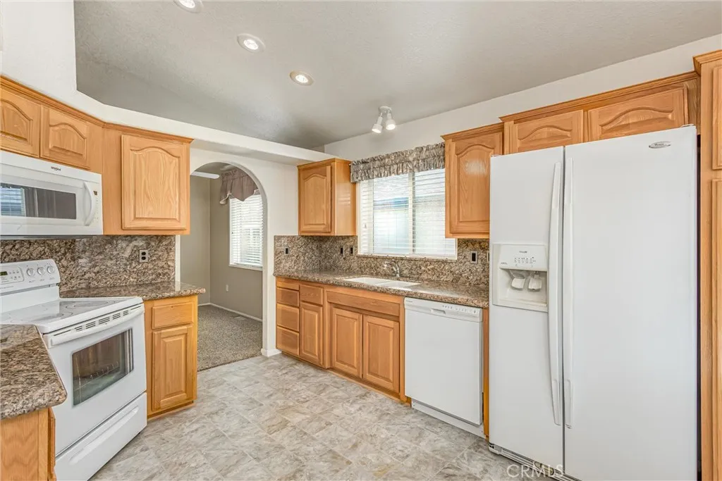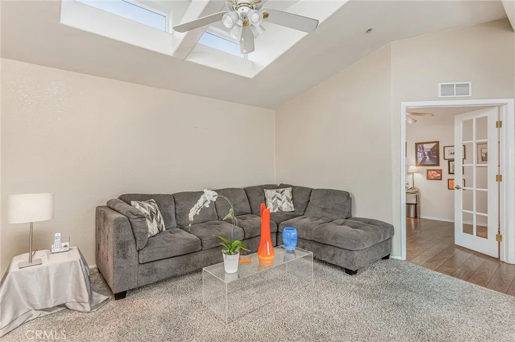 Welcome to this Beautiful home located in Valencia Lea 55+ park. It is one of the most prestigious areas it is nestled at the base of the gorgeous San Bernardino mountains close to shopping centers, freeways , Restaurant's and Costco. This charming home has 1392 sq ft with 2 bedrooms with an extra room used for and office or etc. Spacious living room, Kitchen has granite counters tops and great view of the mountains from the Kitchen Window.Dining is off the Kitchen area. The primary room has a walk-in closet, primary bathroom offers walk-in bathtub. For your convenience there is an indoor laundry room with storage cabinets, there are fans throughout, recessed lighting skylights and vaulted ceiling. Security door on the front door. Slider door leading out to the large covered patio great for relaxing or entertaining and the sound of the pond near by.Enjoy the amenities pool, spa, 2 club houses, Library, fitness room, creeks, ponds, walking trails and putting green. This house is in a great location..MUST SEE !