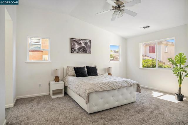 Welcome to this beautifully updated two-story home located in one of Martinez’s most sought-after neighborhoods. Featuring 4 spacious bedrooms and 2.5 bathrooms, this move-in-ready home offers both comfort and convenience. Step inside to discover fresh interior paint, brand-new flooring, a new stove, and a new dishwasher. The open-concept floor plan seamlessly connects the family room and kitchen, creating the perfect space for entertaining. The kitchen boasts an island, walk-in pantry, and plenty of storage—ideal for everyday living and hosting guests. All four bedrooms are located upstairs, including the master bedroom with a walk-in closet (complete with built-in shelving), dual sinks, a soaking tub, and separate shower. At the top of the stairs, a versatile loft area is perfect for a home office or study space. Additional highlights include a backyard patio, low-maintenance landscaping, and close proximity to top-rated schools, parks, pickleball courts, and easy freeway access. This meticulously maintained home is the one you’ve been waiting for—don’t miss your chance to see it! Open House on Sunday, September 21 at 2-4pm. Come by and see this charming home.