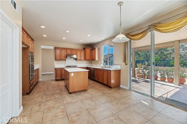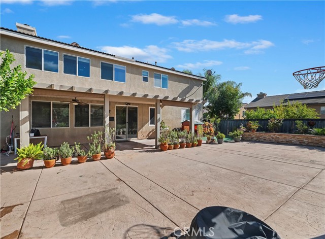 Stunning two-story home located in a charming Wildomar community! This spacious property features five large bedrooms and three and a half bathrooms, including a downstairs bedroom with its own private bath. The home boasts numerous upgrades and offers three garage spaces. Enjoy a separate dining room, as well as modern appliances, including newer ovens and a dishwasher. Enjoy working on these beautiful stone countertops. Step outside to a fantastic hardscape backyard, perfect for entertaining guests. The backyard also features a small pond in one corner and a cozy seating area in another, all under a covered patio equipped with a ceiling fan. Plus, you'll find fruit trees adding to the allure. Conveniently located near shopping and with easy access to the 15 freeway!