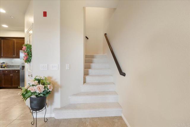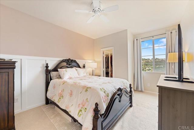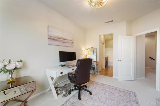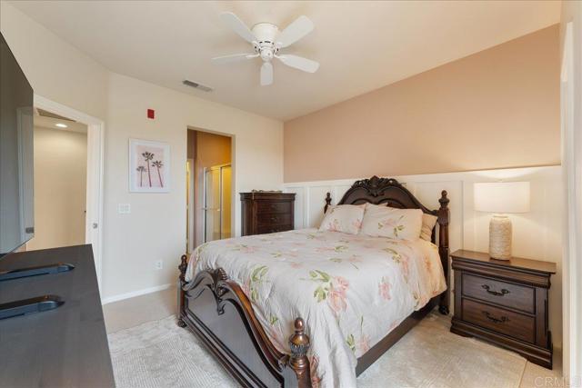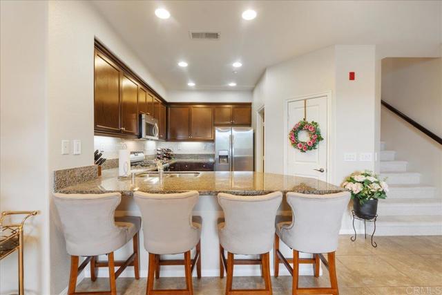 Nestled in the desirable Magnolia community of Old Creek Ranch, this meticulously maintained townhome offers a blend of modern comfort and serene living. Built in 2014, this residence is situated in a rare perimeter location, providing enhanced privacy and stunning west-facing views that capture breathtaking sunsets. Inside, the open-concept floor plan showcases a modern kitchen upgraded with granite countertops, stainless steel appliances, and a breakfast bar that flows effortlessly into the spacious living area. Elegant touches like upgraded backsplash, custom window coverings, and new hardware throughout create a polished, designer feel. The sellers have added numerous thoughtful improvements, ceiling fans, and fresh paint, making this home truly move-in ready. Upstairs, both bedrooms feature their own ensuite bathrooms, enhanced with upgraded fixtures and finishes for maximum comfort and convenience. The in-unit laundry is ideally located on the same level. Additional highlights include durable tile flooring, recessed lighting, central air conditioning, and an attached two-car garage with ample storage space, upgraded with epoxy flooring and overhead racks for organization. Residents of Magnolia at Old Creek Ranch enjoy resort-style amenities, including a pool, spa, BBQ area, fire pit, playground, and scenic walking trails. The HOA covers water and exterior maintenance, ensuring a low-maintenance lifestyle. Located just minutes from San Elijo Hills Town Center, award-winning schools, parks, local trails, shopping, dining, and entertainment options, this home perfectly combines comfort, convenience, and location.