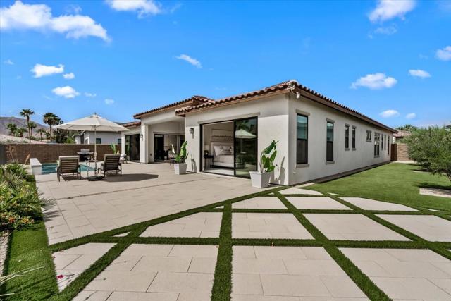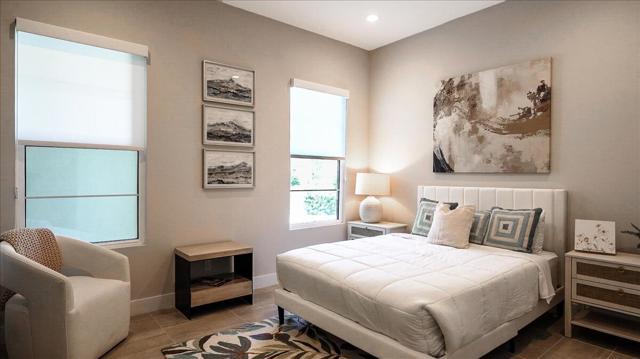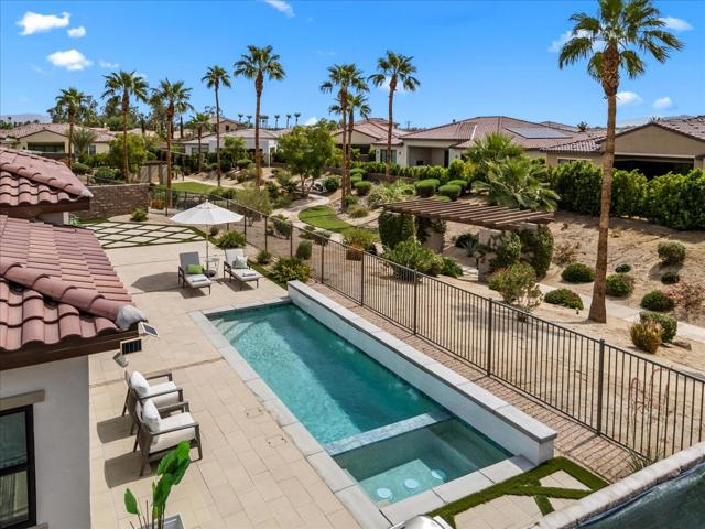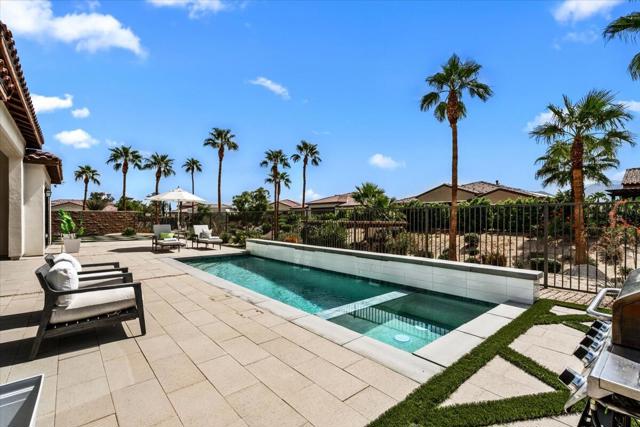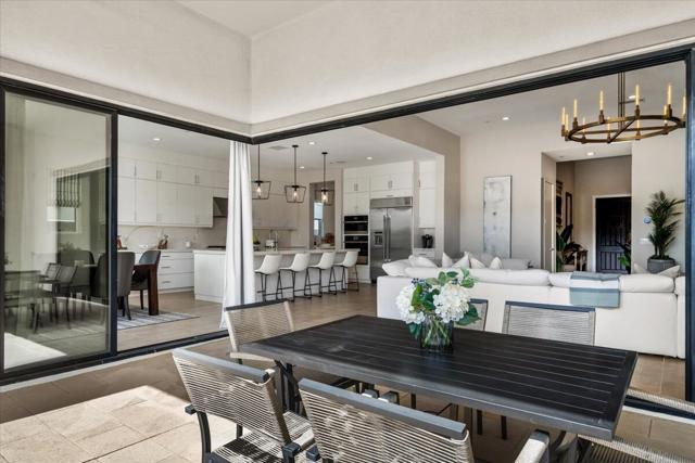 Welcome to Stone Creek Ranch, La Quinta's hidden gem...an exclusive gated enclave offering an elevated desert lifestyle. This stunning 2022 Toll Brothers Larrea model features 4 ensuite bedrooms and a modern open concept design. The dramatic great room boasts soaring 12 ft. ceilings and cornerless 90 degree sliding glass doors, blending indoor luxury with resort-style outdoor living. The gourmet kitchen is a chef's dream with a large island, quartz countertops, JennAir appliances and butler's pantry...perfect for casual dining or elegant entertaining. The primary retreat is a serene sanctuary with pool access, spa-like bath with soaking tub, luxe shower, dual vanities, and a huge walk-in closet. Three guest suites are thoughtfully separated for privacy and comfort. Set on a premium lot, the backyard offers a sparkling pool and spa, expansive side yard, and mountain views--ideal for dining, relaxing, and entertaining. Additional features include owned solar and a 3-car garage. Beyond the home, enjoy the community's meandering creeks and waterfalls or explore nearby hiking trails. Minutes from PGA West, Indian Wells Tennis Garden, polo and equestrian grounds, Coachella and Stagecoach festivals, plus El Paseo's world-class dining and shopping. This contemporary retreat combines serenity, sophistication, and the ultimate desert lifestyle. Schedule your private tour today!