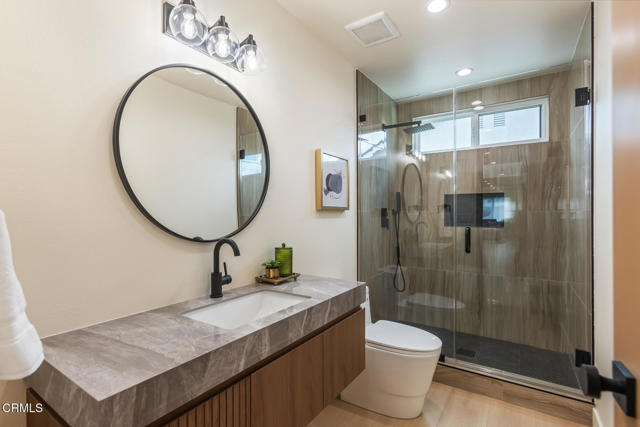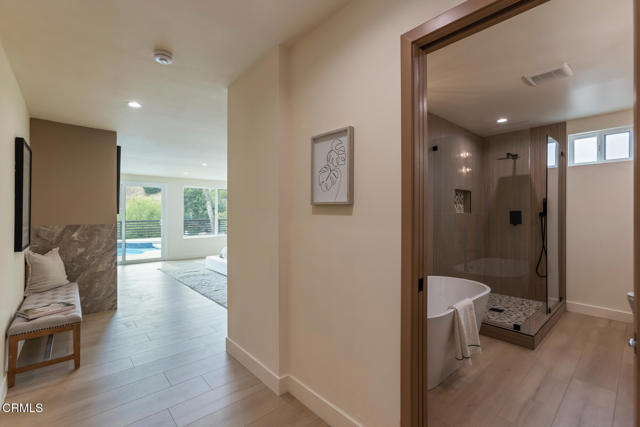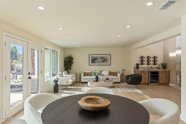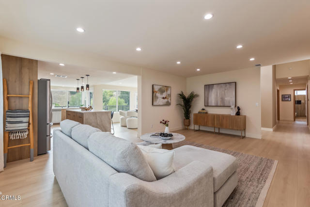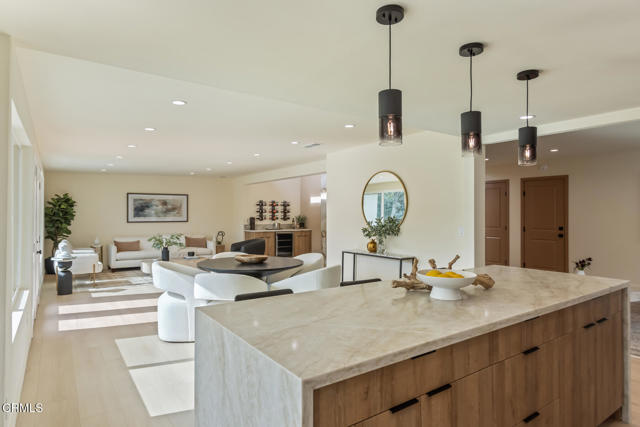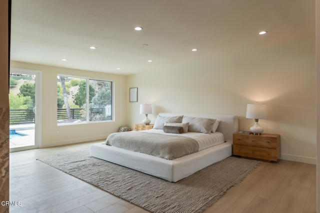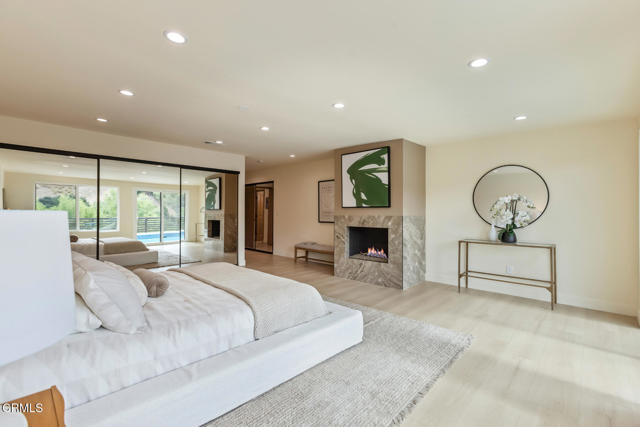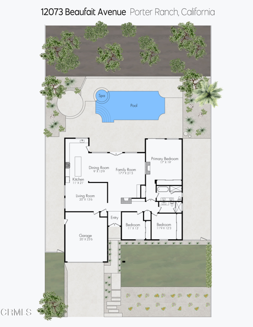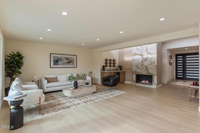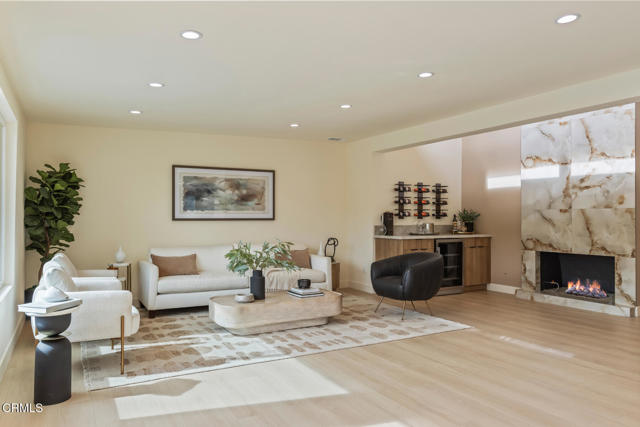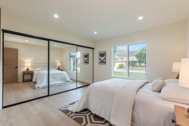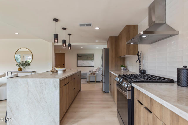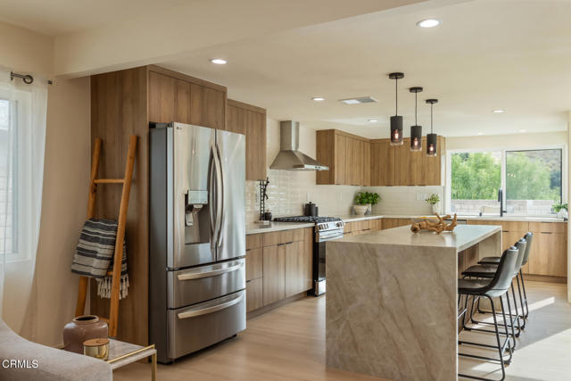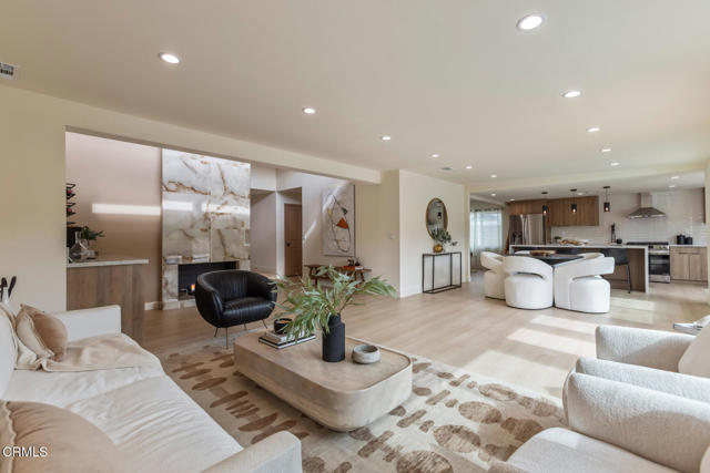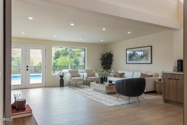 Welcome to this stunning single-story home in the highly desirable Porter Ranch community, offering 3 bedrooms, 2 bathrooms, a sparkling pool and spa, and breathtaking canyon views. Perfectly situated within the award-winning Castlebay Lane Elementary and Granada Hills Charter school districts, the property is just minutes from local parks, hiking trails, The Vineyards at Porter Ranch, and convenient freeway access. Extensively renovated, the home features a brand-new kitchen with modern cabinetry, Taj Mahal quartzite countertops and backsplash, a waterfall island with pendant lighting, state-of-the-art LG appliances, and a built-in bar with beverage/wine refrigerator. Both bathrooms have been beautifully updated with new showers, vanities, toilets, fixtures, and lighting, while the primary suite includes a new soaking tub. Additional upgrades include new laminate flooring throughout, designer-tiled fireplaces in the living room and primary suite, recessed lighting with smart switches, new windows and doors, fresh interior and exterior paint, a new entry and garage door, a new flat roof section, and LG washer and dryer. The backyard is an entertainer's dream with a resurfaced and retiled pool, new pool equipment, upgraded fencing and gates, fresh concrete work, and new landscaping with irrigation. This move-in ready residence combines modern luxury with everyday comfort in one of Porter Ranch's most sought-after neighborhoods.
