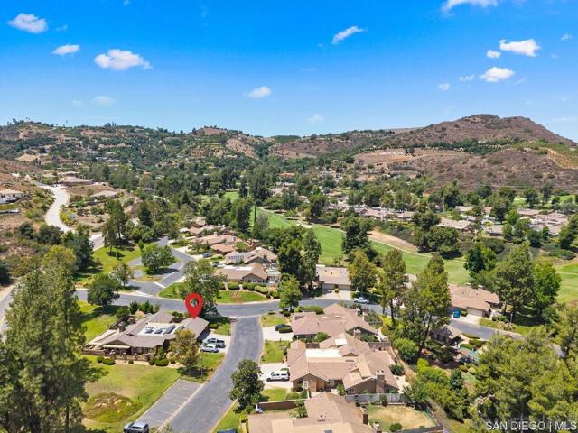 Welcome to a truly remarkable home, perfectly situated on a quiet cul-de-sac and offering direct access to the scenic Pala Mesa golf course. This property presents an ideal blend of peaceful living and convenient accessibility. This quiet retreat is nestled in the heart of beautiful Fallbrook, providing a serene environment while remaining conveniently close to the 15 Freeway, making commutes and travel effortless. As you step inside, you'll be greeted by vaulted ceilings and a welcoming layout that invites comfort and relaxation. The large windows throughout the home frame cinematic vistas of the surrounding greenery, allowing an abundance of natural light to fill the living spaces and providing continuous beautiful views of the outdoors. The backyard is truly a private paradise, offering ample space and an inviting atmosphere, whether you're hosting a lively gathering with friends and family or simply unwinding after a long day. This particular lot stands out as one of the few side-by-side units within the community, providing a unique sense of privacy and space. It features its own beautifully designed landscaping, complete with modern turf and convenient concrete pads, ensuring low maintenance and year-round enjoyment. With plenty of room to relax and entertain, this backyard is the perfect spot to unwind and create lasting memories.