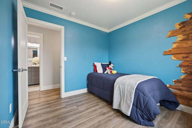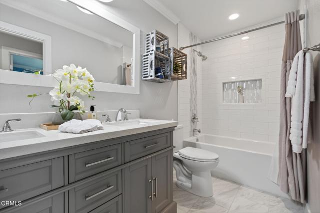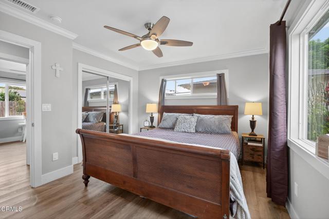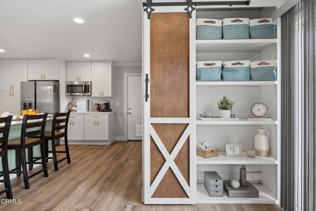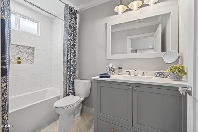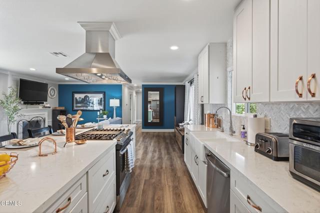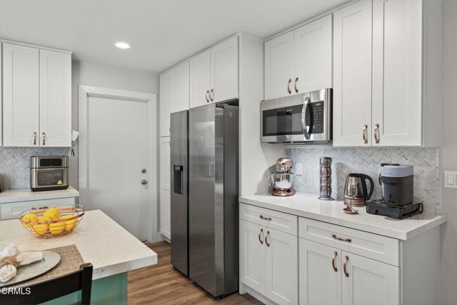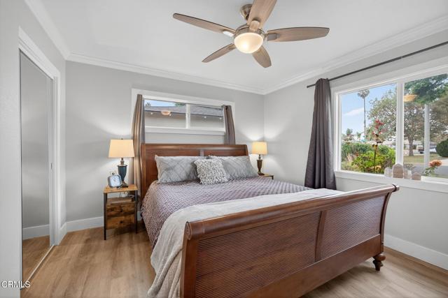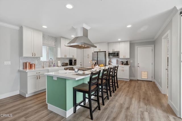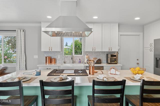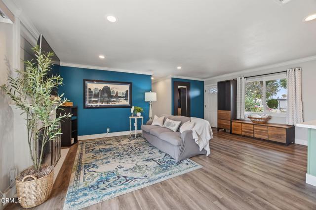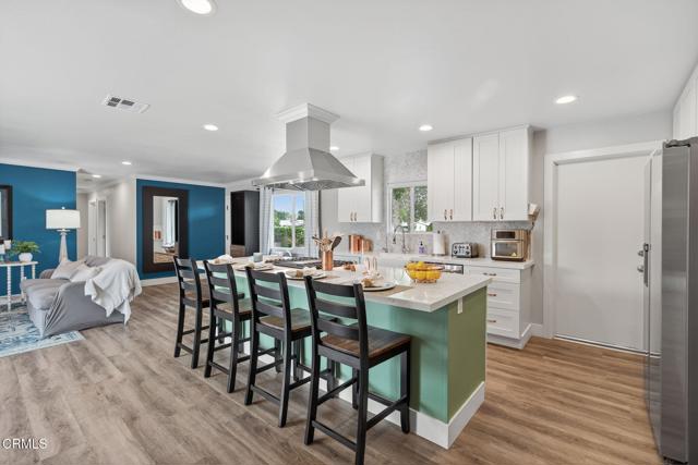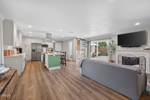 Nestled in a peaceful Camarillo community, this beautifully remodeled single-story home offers 3 bedrooms, 3 bathrooms, and 1,512 sq ft. of thoughtfully designed living space. A welcoming front entrance with rose bushes lining the pathway sets the tone for the charm inside.Extensively remodeled in 2018, the home received a new roof, dual-pane vinyl windows, updated water lines, and upgraded electrical. The bathrooms feature fully tiled bath and shower combos, while the open-concept main living area showcases quartz countertops, a marble backsplash, stainless steel appliances, and a striking 9-foot island with bar seating. Luxury vinyl plank flooring, crown molding, and a wood-burning fireplace complete the inviting space.The versatile ensuite/bonus room adds even more value with a bedroom, closet, kitchen, half bath, sunroom, and a private garden retreat. A two-car garage with epoxy flooring and built-in workbench, RV parking, and a recirculating instant-heat water heater enhance functionality and comfort.Outdoors, enjoy a private backyard highlighted by an orange tree, pear tree, and dwarf hybrid avocado bush. Centrally located near schools, parks, shopping, and dining--and paired with Camarillo's highly desirable year-round climate, this home blends convenience, upgrades, and tranquility in one rare package.