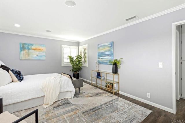 Beautifully Updated Townhome in La Costa! This light-filled 2-bedroom, 2-bath corner unit offers a thoughtfully designed floor plan that blends comfort, convenience, and style. The bright and airy living area features breathtaking mountain views and opens to a spacious balcony—perfect for entertaining or enjoying your morning coffee or evening glass of wine. The primary suite includes an ensuite bathroom and is large enough to accommodate a sitting area or home office setup, complete with built-in closets and custom shades. The updated kitchen boasts sleek stainless steel appliances, a brand-new wine refrigerator, and ample storage. Additional upgrades include dual-pane windows and sliders with shutters, central air conditioning with a Honeywell Smart thermostat? and 2 sets of Bluetooth ceiling speakers. In-unit laundry closet with a full-size washer and dryer. Highlights continue with an attached one-car garage featuring newly finished epoxy flooring and extra storage space. Additional parking includes a reserved space and a private driveway. A newly remodeled 20’ x 5’ storage room beneath the property offers exceptional space for all your storage needs. Residents enjoy resort-style amenities, including two sparkling pools, spas, barbecue area and tennis courts. Ideally located minutes from shopping, dining, beaches, golf courses, the library, movie theaters, Omni La Costa Resort, Bressi Ranch, Palomar Airport, and more. Within a highly rated school district, this home presents an outstanding opportunity to live in the desirable La Costa community.