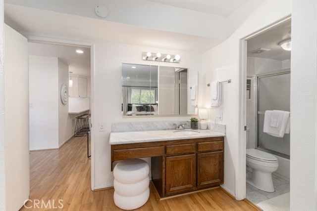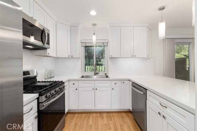 Discover luxury and convenience in this stunning, remodeled 1-bedroom end-unit condo at 25765 Marguerite #H104, Mission Viejo. This spacious, light-filled home boasts a chef’s kitchen, recently upgraded with sleek quartz countertops and a large bar perfect for entertaining guests. The open-concept design flows effortlessly, creating an inviting atmosphere for both relaxation and social gatherings. Enjoy your morning coffee on one of two private patios—one overlooking lush greenery and trees, offering a serene retreat. The luxurious bedroom suite provides ample space and tons of storage, ensuring all your needs are met. New windows enhance energy efficiency and flood the home with natural light, highlighting the modern updates throughout. Located in an amazing community, this condo is within walking distance to the scenic So Creek Trail, vibrant downtown restaurants, and charming shops. Golf enthusiasts will appreciate the nearby golf course, and commuters will love the quick access to the freeway. The HOA includes water and trash, adding to the ease of ownership. Parking is a breeze with one covered carport and an additional guest parking space, plus easy access from the carport to the unit. This move-in-ready, light and bright condo combines privacy, style, and an unbeatable location. Don’t miss your chance to own this Mission Viejo gem!