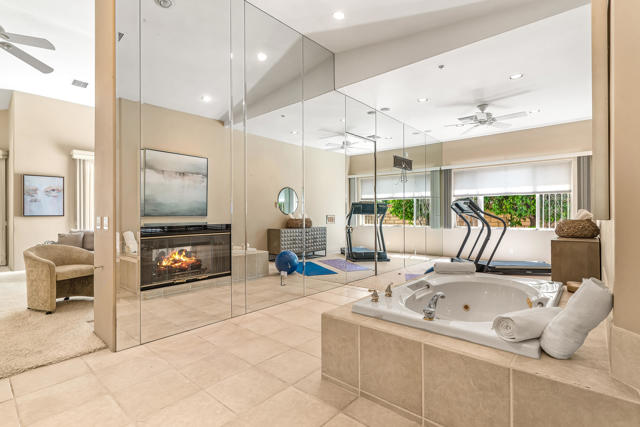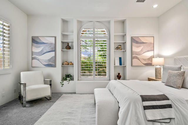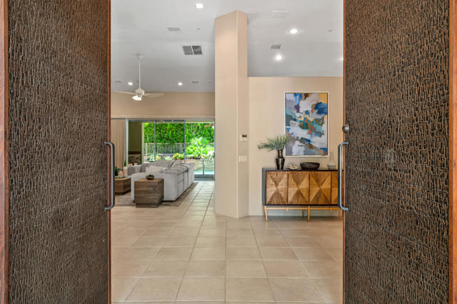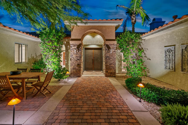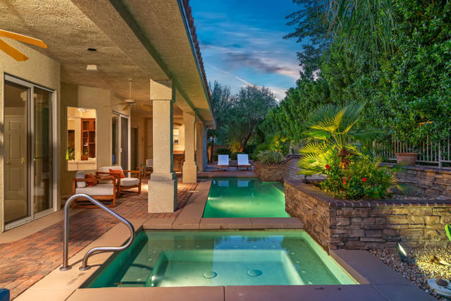 Welcome to 3090 Goldenrod Lane, a timeless 1998 custom-built residence nestled in the coveted Andreas Hills neighborhood. Perfectly situated just down the street from Indian Canyons Country Club, this sprawling 3,400 sq. ft. home offers 4 bedrooms, 3 bathrooms, and soaring ceilings that flood the interiors with light and space. Step into the expansive living room where custom built-in cabinetry, a dramatic double-sided fireplace, and an adjacent custom bar set the stage for everything from lively entertaining to intimate evenings at home. The chef's kitchen is a dream, featuring slab granite countertops, Sub-Zero refrigerator/freezer, and a rolling butcher block workstation--ideal for dinner parties or gourmet meal prep. The adjoining dining area easily accommodates an oversized table, ensuring every guest has a seat at the celebration. The private primary retreat is a sanctuary of its own, boasting two custom walk-in closets worthy of any fashionista and a spa-inspired ensuite with double vanities, soaking tub, and a versatile flex space perfect for a home gym or office. On the opposite wing, three additional bedrooms provide comfort and privacy for family or guests. Outdoor living shines here, with multiple entertainment areas wrapping around the property. Enjoy the sparkling custom saltwater pool and spa with pebble tec finish and a cascading stack-stone waterfall for a serene, resort-like vibe. A built-in grilling station with bar seating and a beautifully landscaped yard, complete with rose garden, elevate the alfresco experience. Upgrades are plentiful: 58 OWNED solar panels with TWO Tesla Powerwalls, EV chargers, a three-car garage, and abundant storage--all combining modern efficiency with luxury living.