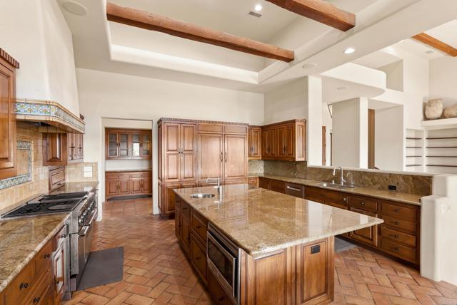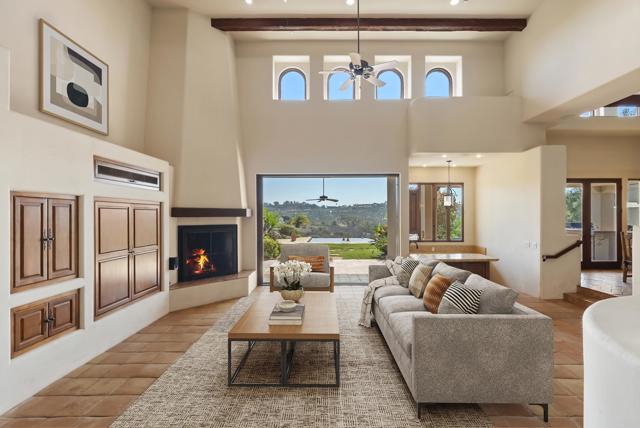 Luxury Estate in Wildflower Estates – Olivenhain Property Overview Welcome to an extraordinary custom estate in the prestigious, manned-gated community of Wildflower Estates, where timeless architecture meets resort-style living. Situated on 2.1 private acres, this residence offers approximately 7,400 square feet of refined interiors, a detached guest house, and breathtaking panoramic views of Rancho Santa Fe and the Olivenhain valley. Designed for those who value both elegance and comfort, this property provides the ultimate Southern California lifestyle. Main Residence • Expansive floorplan designed with a primarily single-level layout, offering seamless living and accessibility. • A private upstairs studio, perfect as a creative space, office, or gym. • Soaring ceilings, oversized windows, and open living areas that maximize natural light and highlight the spectacular valley views. • Chef’s kitchen with professional-grade appliances, center island, and custom cabinetry designed for both functionality and entertaining. • Formal and informal living rooms, each with fireplaces, creating multiple spaces for hosting and relaxation. • Luxurious primary suite featuring spa-inspired bathroom, walk-in closets, and private retreat area. Detached Guest House • A fully independent 2-bedroom, single-level guest residence. • Ideal for extended family, guests, or private staff quarters. • Designed with the same level of finish and detail as the main residence, ensuring comfort and elegance. Resort-Style Outdoor Living • Sparkling pool surrounded by sun-drenched patios. • A fully equipped outdoor kitchen with pizza oven and built-in BBQ, perfect for entertaining year-round. • Expansive backyard designed for resort-like living, offering multiple lounging areas and lush landscaping. • Panoramic sunset and valley views provide a serene backdrop for both intimate evenings and large gatherings. Additional Features • 5-car garages with ample storage and motor court. • Located within one of North County San Diego’s premier gated neighborhoods, known for its exclusivity, equestrian charm, and proximity to top-rated schools, shopping, dining, and coastal beaches. • Gated privacy and security within Wildflower Estates, one of the region’s most desirable enclaves.