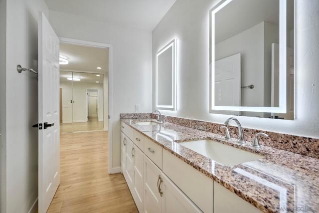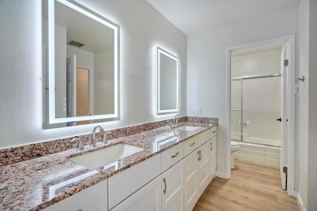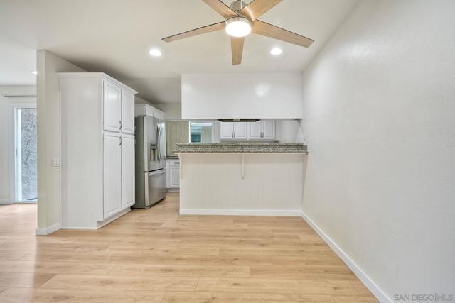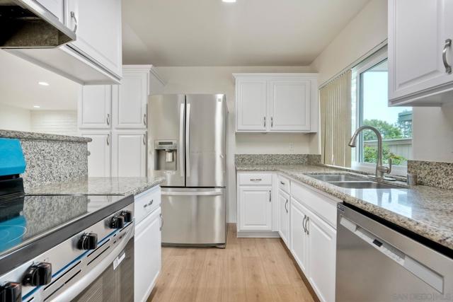 Welcome to Your New Home in Playmor! Step into this beautifully upgraded end-unit townhome in the sought-after Playmor community of Mira Mesa. Every detail has been refreshed, making it truly move-in ready: ? Fresh interior paint throughout, including cabinets and doors ? Granite countertops and brand-new oven/stove ? Luxury waterproof vinyl plank flooring ? New baseboards, light fixtures, LED bathroom mirrors, ceiling fans, closet doors, bedroom doors, and shower door Enjoy your own private patio with in-unit washer and dryer, perfect for convenience and relaxation. The community offers open green spaces with mature trees, giving you a peaceful setting right outside your door. Practical perks include two assigned parking spaces (one carport + one space #185) and a central location close to freeways, shopping, and top schools. Don’t miss the chance to own this stylish, low-maintenance townhome in one of Mira Mesa’s most desirable neighborhoods — it’s a must-see!