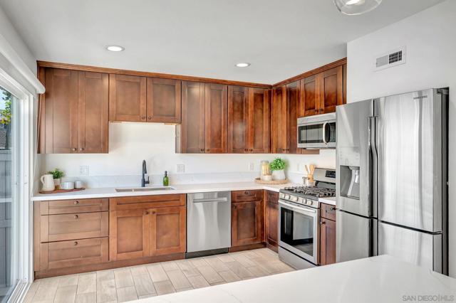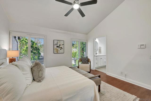 Beautifully Renovated Townhome in Premier La Jolla Village Location! Welcome to this stunningly updated 3-bedroom, 2.5-bath townhome located in one of the most sought-after complexes in La Jolla Village. This spacious and stylish home offers the perfect blend of comfort, function, and convenience. Step inside to a welcoming & spacious open layout, featuring plantation shutters, newer dual-pane windows & sliders. The updated kitchen boasts a breakfast bar perfect for casual dining, while the adjacent dining room is ideal for entertaining. A main-level powder room adds to the convenience. Upstairs, you'll find three generously sized bedrooms, including a tranquil primary & ensuite bathroom. Enjoy the peaceful ambiance of the large private back patio—perfect for outdoor dining or relaxing in the La Jolla sunshine. Additional highlights include a 2-car garage with built-in storage, and easy access to UCSD, I-5, local beaches, UTC, dining, shopping, and more. Don't miss this rare opportunity to own a turn-key home in one of La Jolla's best communities!