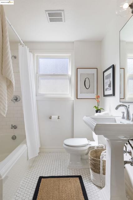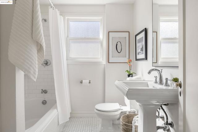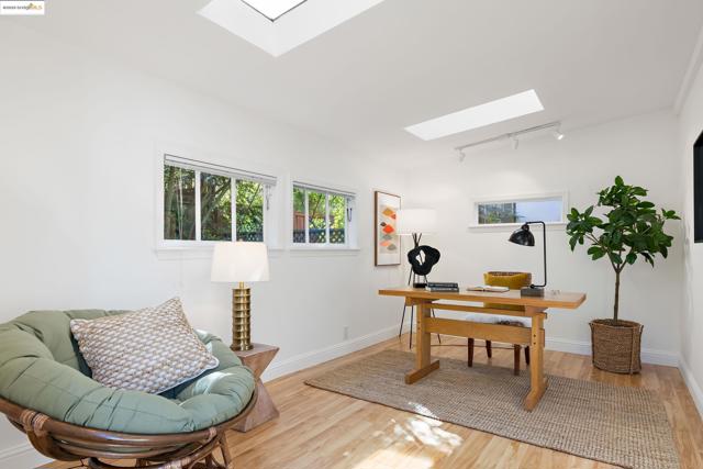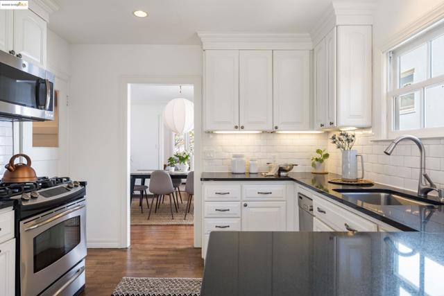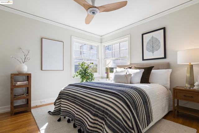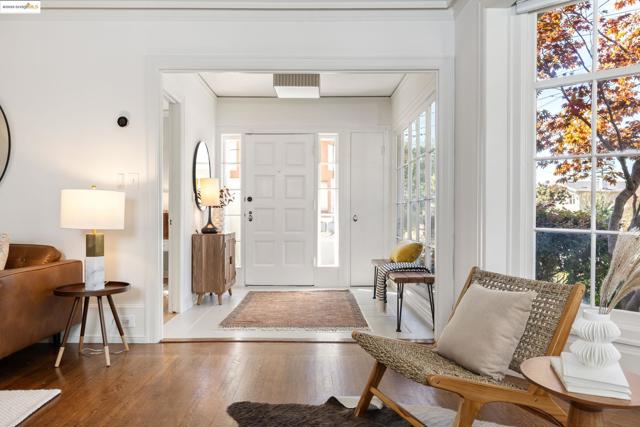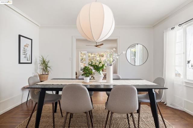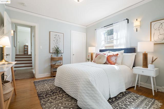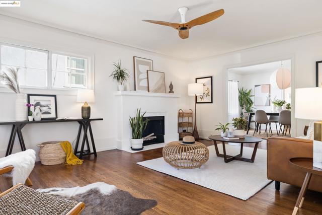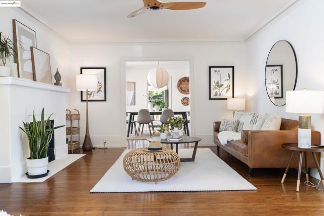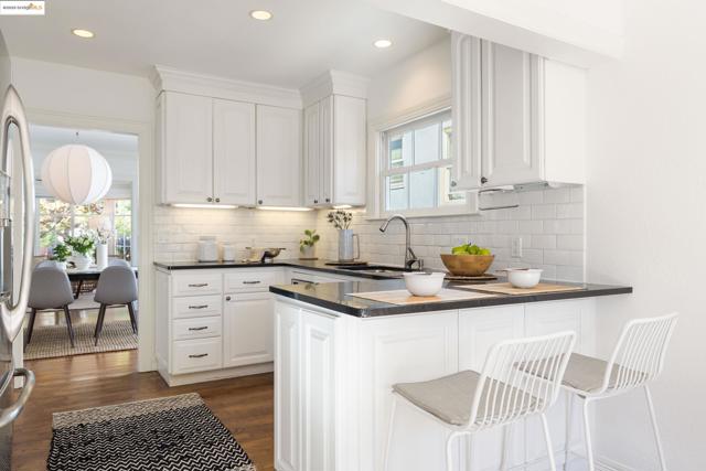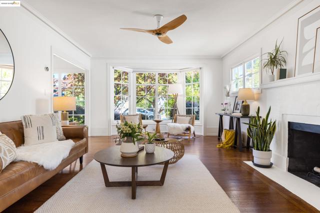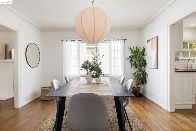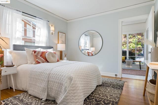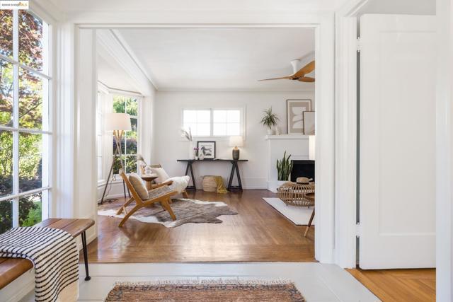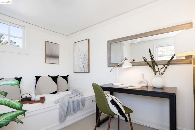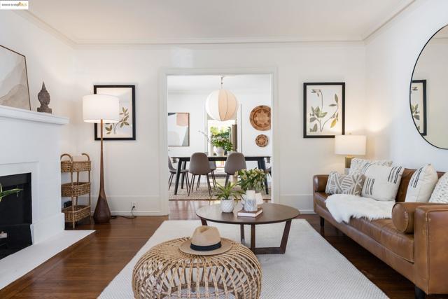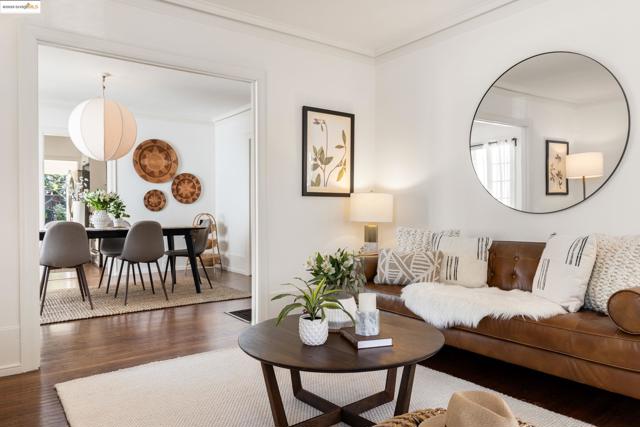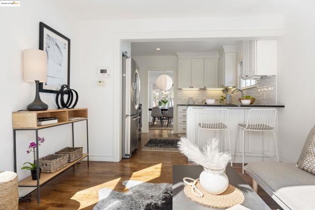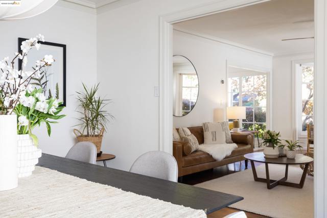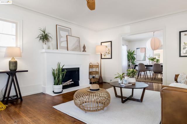 Set along one of Glenview’s most picturesque streets, this 2++BD/1BA 1923 home blends period charm with modern updates. A gracious entry leads to the light-filled living room with classic fireplace and bay window. The elegant dining room pairs original molding with a modern pendant, while the updated kitchen features white cabinetry, black counters, and a peninsula that opens to a cozy family room and garden—ideal for entertaining. Three bedrooms offer flexibility; one near the entry makes a great retreat, the corner-windowed primary sits a few steps up, and the third upstairs includes a daybed nook—perfect as a guest room or office. The vintage-style bath is both charming and refreshed. Outside, enjoy a generous garden, patio for al fresco dining, raised beds, and quiet nooks. The large garage includes a bonus room for office, gym, or creative use. Located in Oakland’s desirable Glenview near top dining, Diamond Park, and with easy SF access, this home offers classic character and modern comfort.