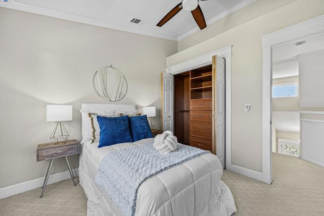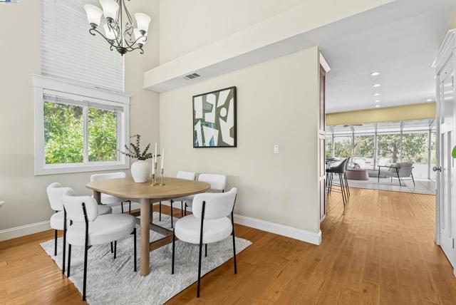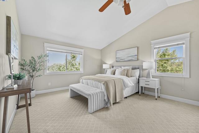 Tucked away at the end of a serene cul-de-sac, this beautifully updated 4-bedroom, 3-bathroom home offers approximately 2,151 sq. ft. of comfortable living on an expansive 10,000+ sq. ft. lot. The thoughtfully designed floor plan includes a convenient downstairs bedroom and full bath—ideal for multi-generational living or guest accommodations. Inside, the home showcases a modernized kitchen, elegant hardwood floors, and expansive windows that flood the space with natural light. All four bedrooms are bright retreats with mountain views and feature built-in closets for effortless organization. A water softener system further enhances daily comfort. Step outside to your private backyard oasis, where you’ll enjoy sweeping views of Mt. Diablo, 16 mature fruit trees, and a generous side yard—perfect for gardening, entertaining, or simply relaxing in total privacy. Located in the highly sought-after Shadow Cliffs neighborhood, this residence combines tranquility with convenience. With low HOA fees and just minutes from top-rated Pleasanton schools, downtown dining and shopping, scenic parks, and major commuter routes, it’s the perfect blend of comfort and lifestyle. A rare move-in-ready opportunity in one of Pleasanton’s most desirable and established communities.