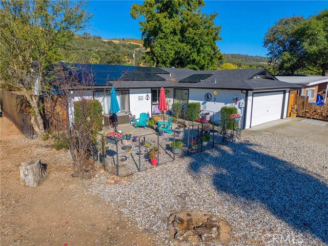 Discover waterfront living at its finest in this thoughtfully designed three-bedroom, two-bathroom home spanning 1,301 square feet in the peaceful community of Clearlake Oaks Keys. This well-constructed all-electric residence showcases quality throughout, featuring beautiful wood floors, recessed lighting that illuminates every corner, and a state-of-the-art reverse osmosis filtration system ensuring pristine water quality. The home's impressive infrastructure includes central heating and cooling for year-round comfort, updated electrical systems, and a new roof installed in 2021. Both bathrooms have been completely remodeled and feature innovative Bluetooth lighting with integrated speakers, granite countertops in the kitchen, and a cozy fireplace for relaxing evenings. The primary bathroom boasts a beautiful tile shower, while the hall bathroom offers a luxurious jetted tub for ultimate relaxation. Enhanced security comes from hardwired outdoor cameras, while the comprehensive owned solar panel system with backup battery and electric vehicle charger provides energy independence without utility bills or lease payments. Step outside to your private deck and dock, where Clear Lake's natural beauty unfolds before you. Wildlife enthusiasts will delight in observing blue herons, ducks, playful otters, turtles, and abundant fish in their natural habitat. The scenic vineyard views provide a picturesque backdrop that changes with the seasons. The garage offers convenient parking and storage solutions, plus houses the laundry facilities. Residents can enjoy optional membership in the Clearlake Oaks Keys Club, which features a community pool for an annual fee. This lakefront neighborhood provides the perfect balance of tranquility and convenience, with essential services nearby and the Clearlake Oaks Boat Launch offering easy water access for boating enthusiasts.