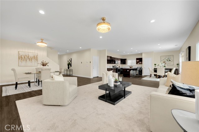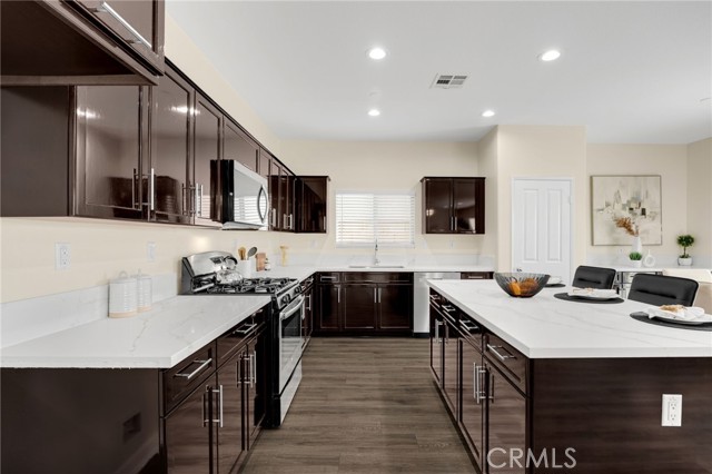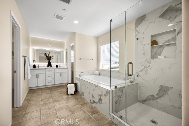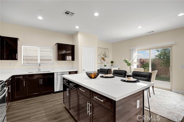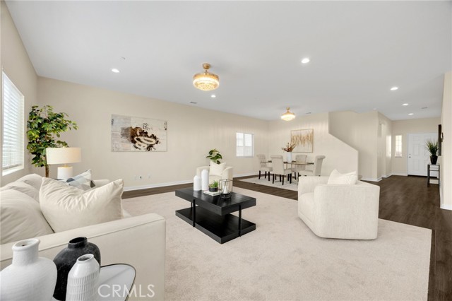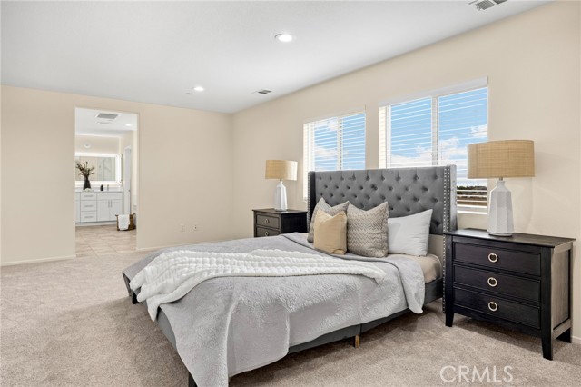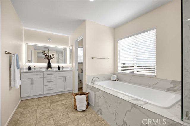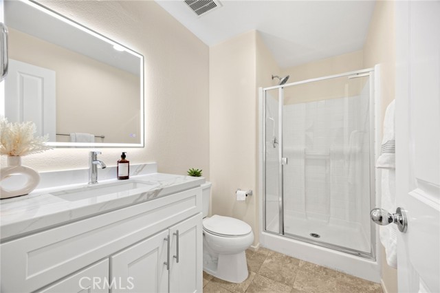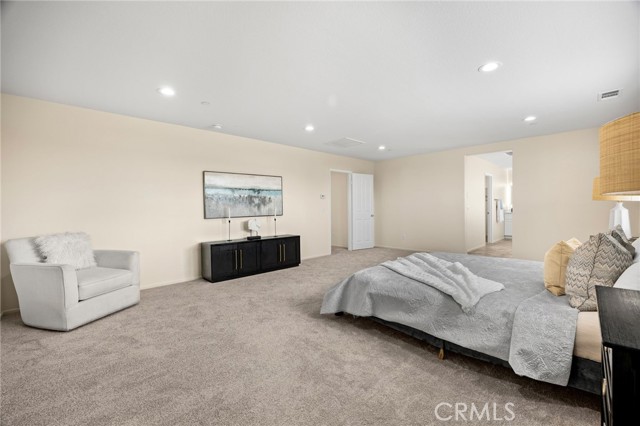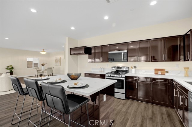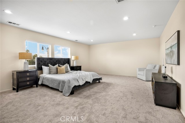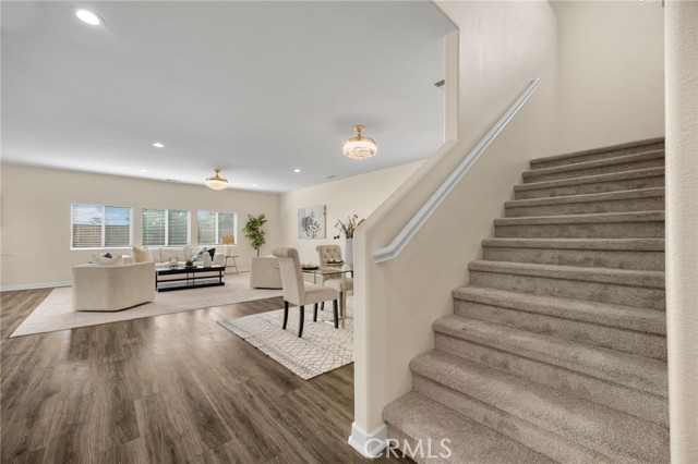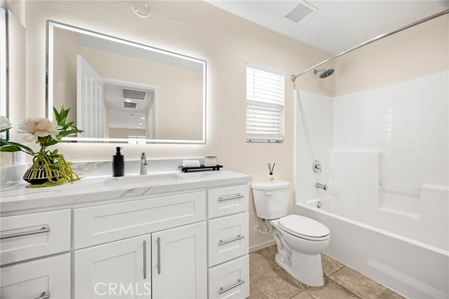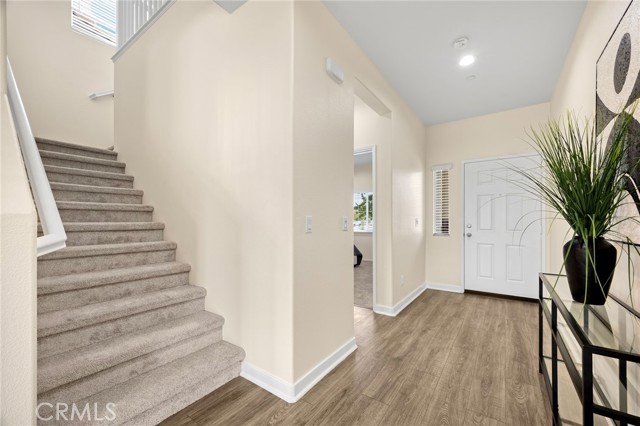 Welcome to Beautifully Updated 4 bed, 3 bath spacious 3107 sqft Single Family Home in a family-friendly Bella Strada Community of Fontana! This stunning home features a bright and open floor plan, huge living and dining area, high ceilings, upgraded kitchen with central island, new quartz countertops, stainless-steel appliances, pantry and a downstairs bedroom with full bath on main level- perfect for guests or multi-gen living. The primary suite offers a luxurious ensuite with renovated brand new primary bath with dual sink vanity, smart mirror, soaking tub, shower and huge walk-in closet. Upstairs you will also enjoy a large versatile loft, two more bedrooms with sizeable walk-in closets- virtually staged, hall bathroom with new vanity along with convenient laundry room, separate ample storage. Home comes with whole house fan along with dual zone A/C. Enjoy a private backyard with fruit trees and access to fantastic community amenities including a pool, clubhouse, playgrounds, park and walking trails. This gorgeous home is close to schools, parks, shopping, and freeways. Move-in ready and perfect for families!