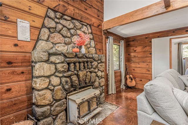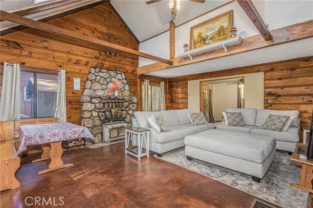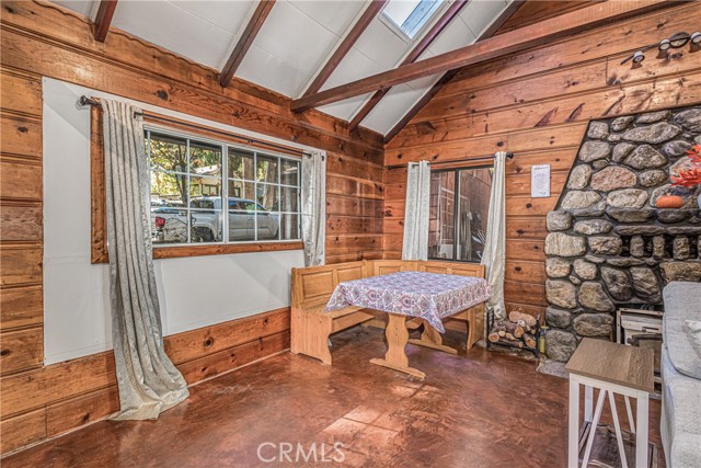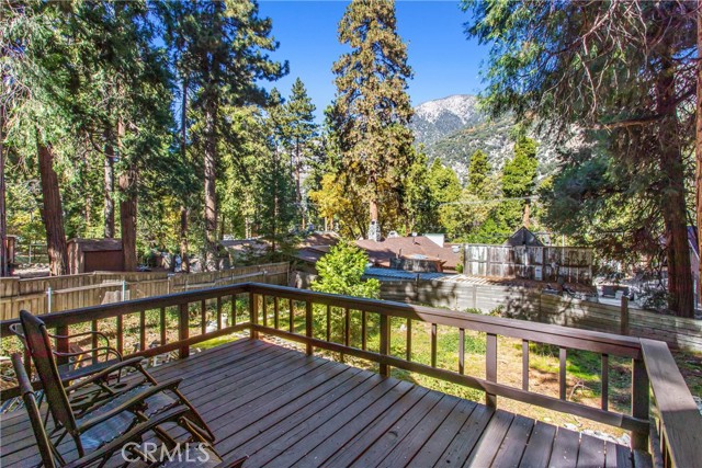 CALLING ALL CABIN LOVERS!!. Located in the lovely low mountain area of Forest Falls. This beautiful home built in 1946 has been freshly and newly painted both on the outside and on the outside deck overlooking a nice big backyard fence, located at the top of the stairs right outside the door of the two story level. This is where you can enjoy the lovely views of the mountains, beautiful skies, the sun, rain, or snow, and the cute bears that love to roam up and down the mountain roads. This home is perfect for raising kids, a family, and even your fur babies. It is very cozy and has an additional loft upstairs that can be turned into a bedroom or even a little mountain playroom. The walls have a tongue in groove with knotted pine that you can enjoy watching movies in, or just a simple campfire by the fireplace. This home has a nice rustic cabin feature with lots of open space that will hold lots of love, joy, happiness, comfort, and forever memories. Don't miss out on this one of a kind beauty!!